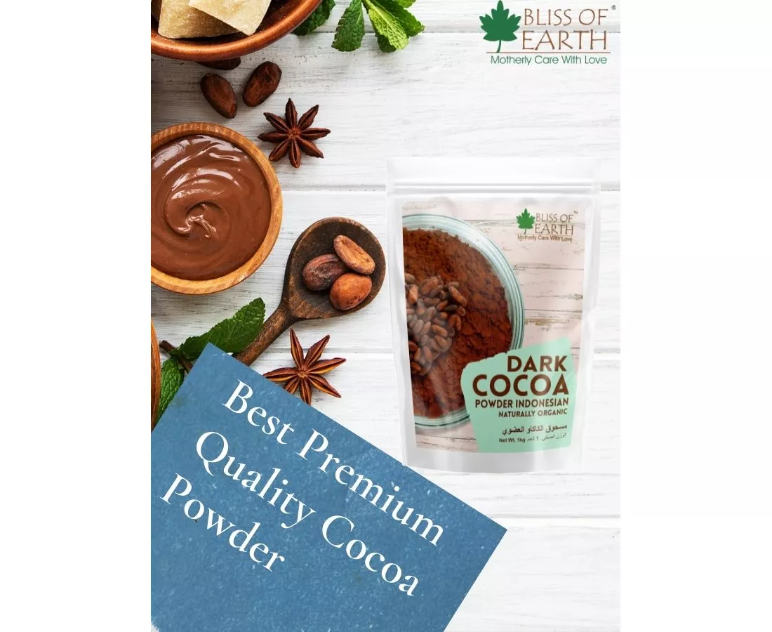 Bliss of Earth Naturally Organic Dark Cocoa Powder for Baking Chocolate Cake Cookies Chocolate Shake Unsweetened Cocoa 500g