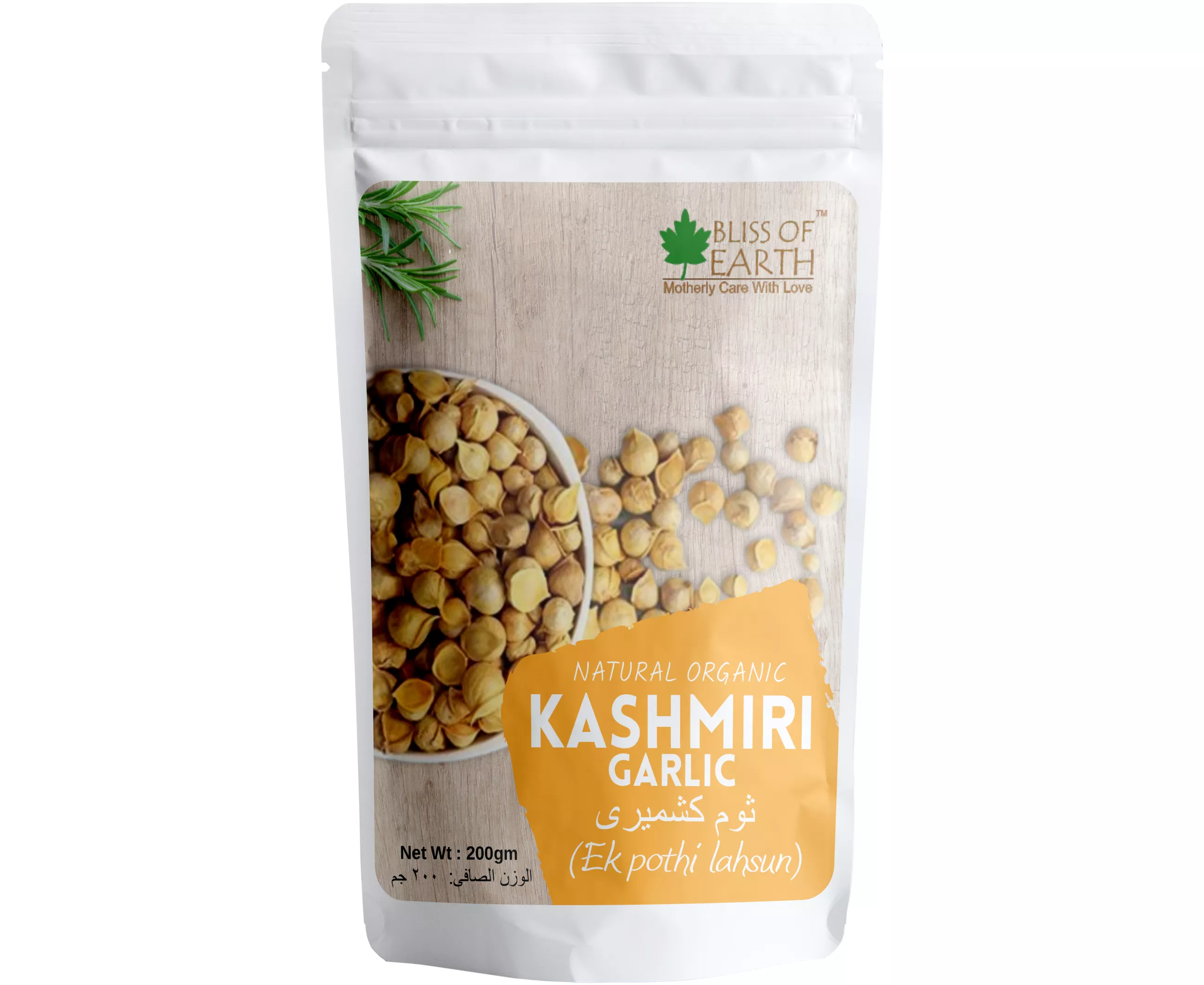 Bliss of Earth Kashmiri Lahsun or Kashmiri Garlic is a rare single clove varity of allium sativum. It is popularly knows as snow mountain garlic of ek pothi lahsun in hindi. Kashmiri garlic is an excellent source of vitamin B1, B6, C as well as copper, selenium and phosphorous. It has various health benefits and can be used both raw & cooked.