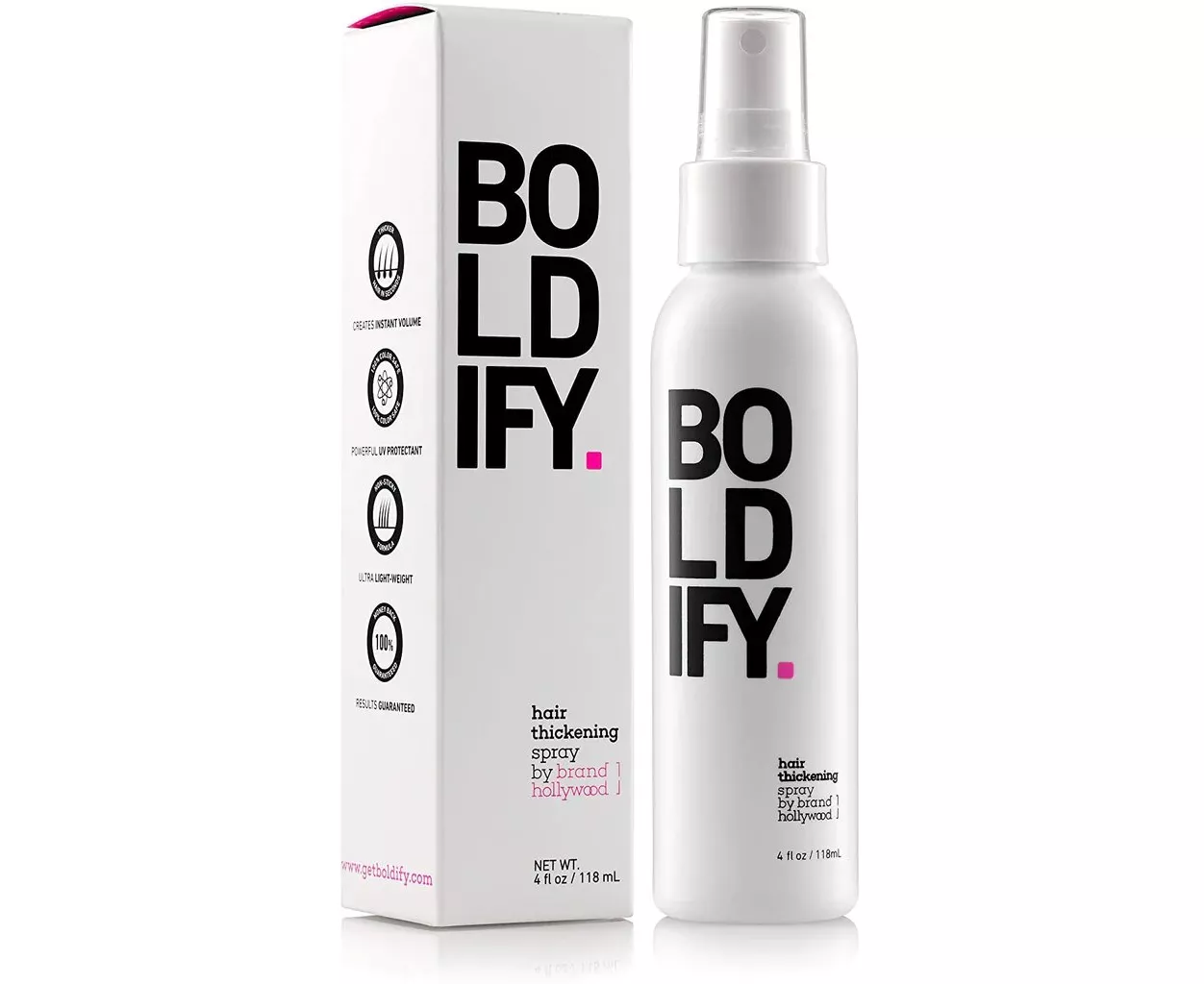 Stylist recommended hair products for women & men, hair volumizer + texture spray hair thickener for fine hair. Finish appearance: matte/textured. Great for adding grip to silkier strands for enhanced hold. Instructions: apply lightly and evenly to lengths of damp hair; comb or tousle through, then dry/style as usual for enhanced thickness and instant volume. Sprays in easily give a layered, textured finish, and provides a light hold that looks great and lasts the entire day. Get inspired by the newest and most versatile hair thickening spray around. Find out for yourself why Boldify has been called the professional stylist's secret weapon. Weve taken everything that is lacking from other thickening products and created what we believe is the ultimate hair thickening solution for women and men.