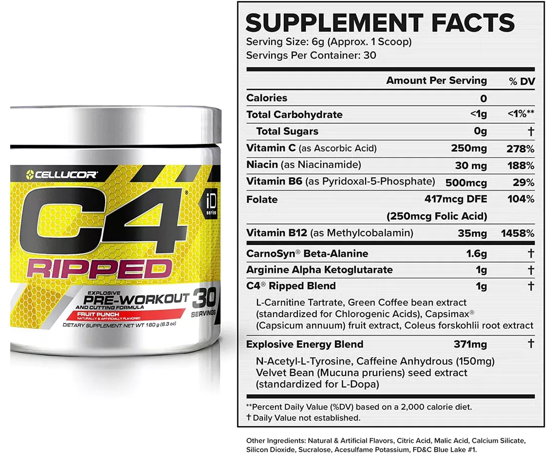 Take one serving (1 level scoop) of C4® Original, mixed with 6 fl. oz of water 20-30 minutes before training. Some individuals may experience a harmless tingling sensation, which is attributed to beta alanine. USE ONLY AS DIRECTED.