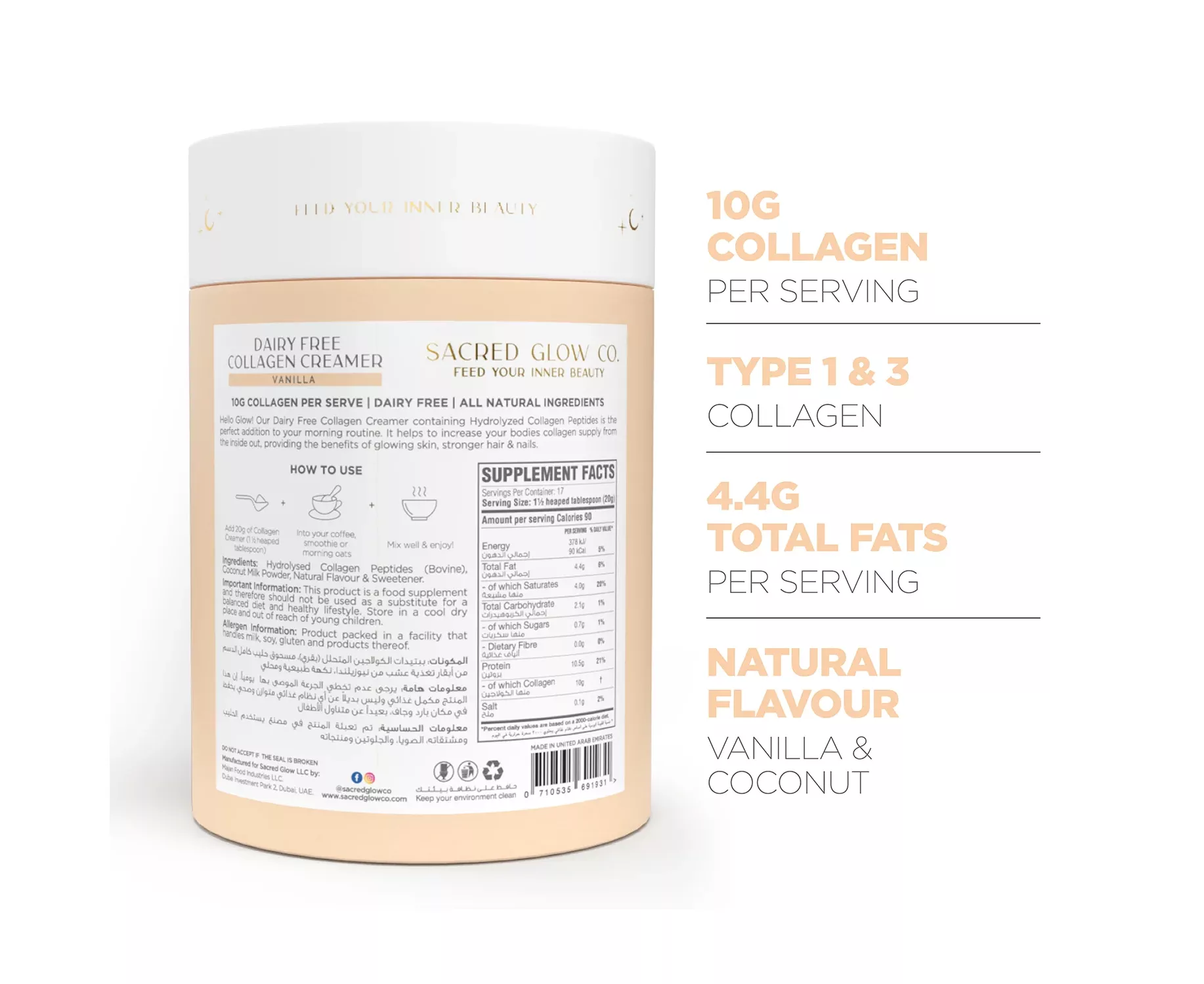 - 10g of collagen per serve.