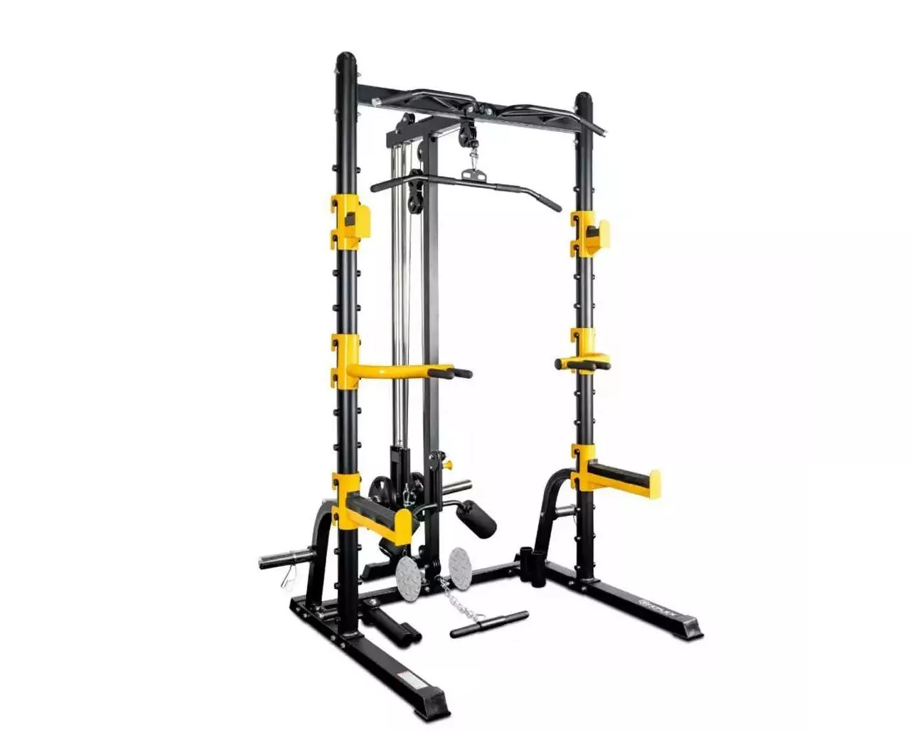 • It also has two 12-inch posts to hold bumper plates and aid with storage. It is also fitted with a pull up bar to perform pull ups.