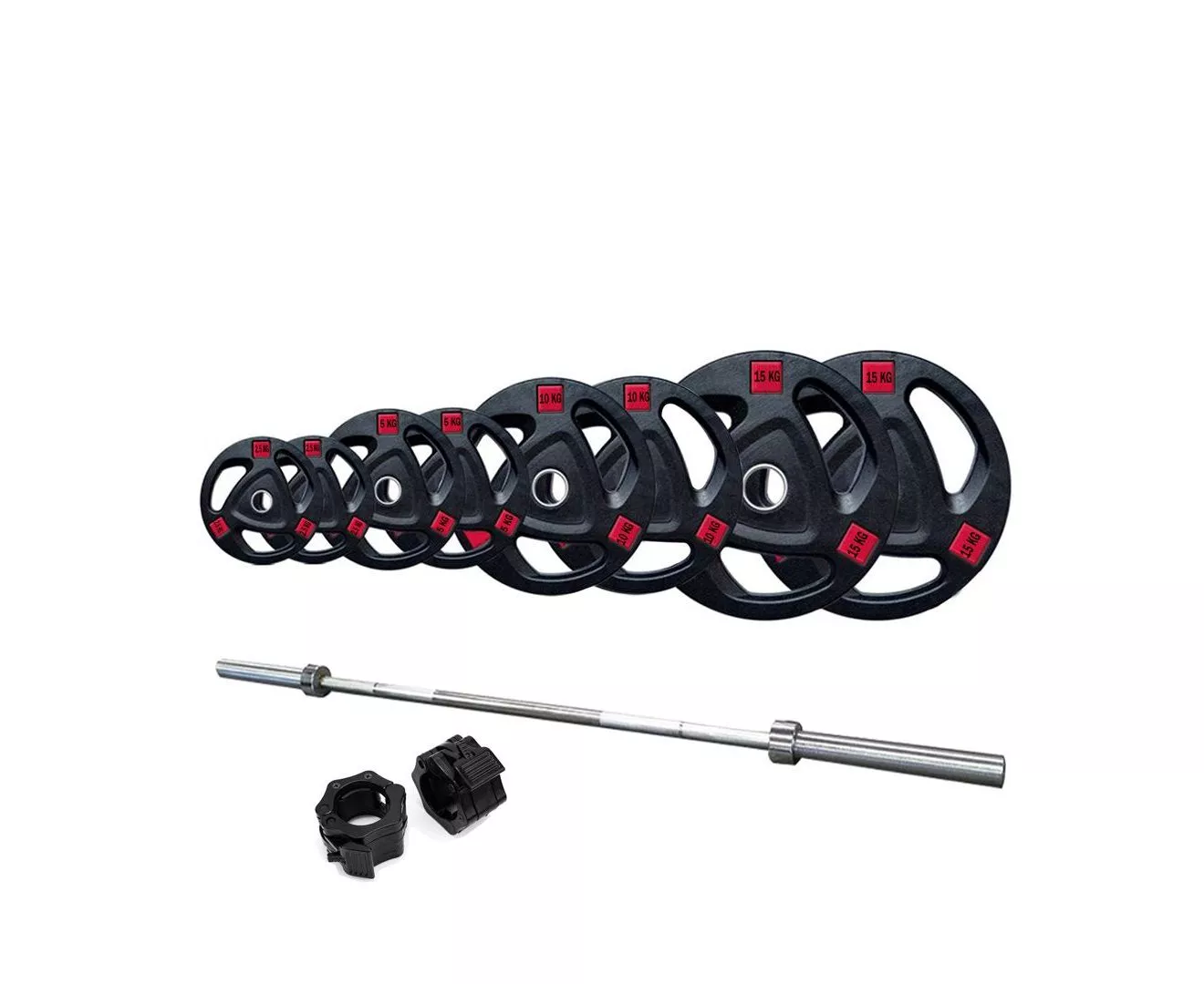 The 80 KG Barbell set with Tri Grip Rubber plates is designed to work out the whole body, from legs and back when squatting to arms and abdominal when performing chest presses.The ability to target specific muscle groups makes the 80 kg a versatile addition to your home gym set up.