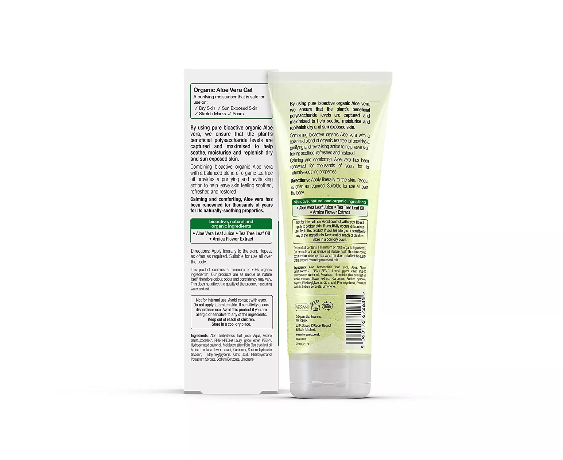 By using pure bioactive organic Aloe Vera we ensure that the plants beneficial polysaccharide levels are captured and maximised to help soothe, moisturise and restore dry and sun exposed skin. This gel combines the properties of aloe vera with tea tree oil. Witch hazel and arnica provide the necessary refreshment and just the right amount of moisture. Ideal for skin irritations, for example after sunburn or an insect bite.