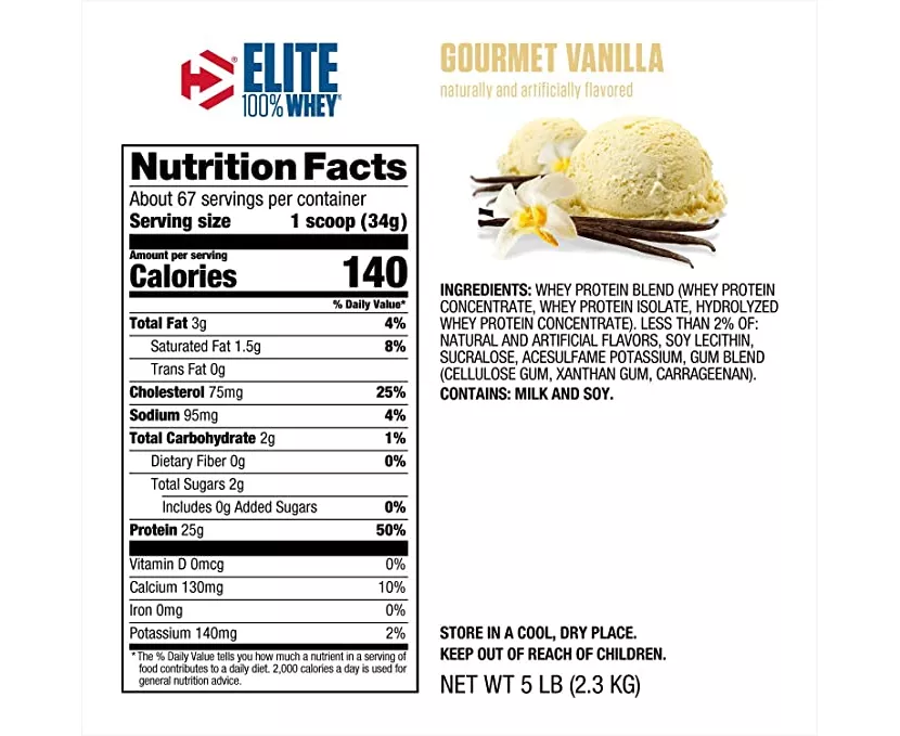 مسحوق بروتين مصل اللبن إليت 100% بنكهة جورميت الفانيليا 5رطل/67 حصة
