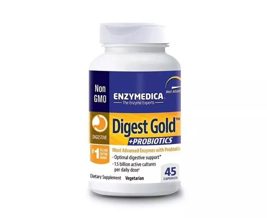 Enzyme deficiencies may result from a combination of age, diet and lifestyle. These deficiencies can lead to a variety of digestive discomforts, including occasional gas, bloating, irregularity and indigestion. Fortifying the digestive system with enzymes and probiotics may promote optimal digestion while maintaining the digestive system's natural balance to support overall digestive health. Digest Gold + Probiotics contains an advanced enzyme formula that breaks down carbohydrates, fats, fiber and protein. Probiotics provide additional digestive support by boosting enzyme production and promoting regularity. Thera-blend enzymes are comprised of multiple variants which are blended to work synergistically throughout the broad pH range of the human body. When taken three times daily. Support a healthy gut with a powerful combination of max strength enzymes and probiotics. With a 2-in-1 formula including all the benefits of Digest Gold and probiotics, its easy to get your gut back on track. Enzymes boost digestion, while a daily dose of 1.5 billion probiotic cultures support immune health, support regularity and bring balance back to the gut. Get the strongest support for the biggest benefit for a healthy gut and vibrant health!