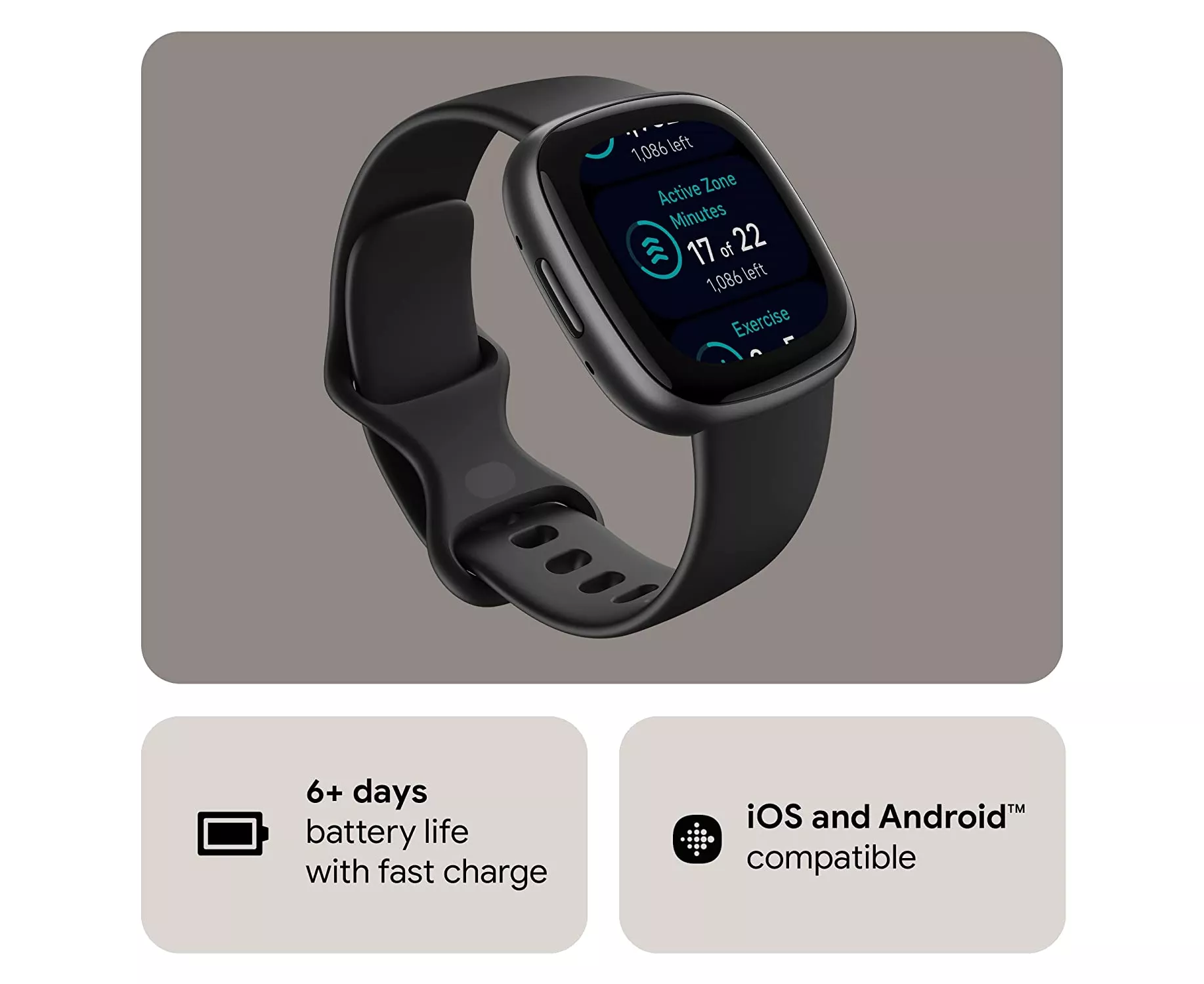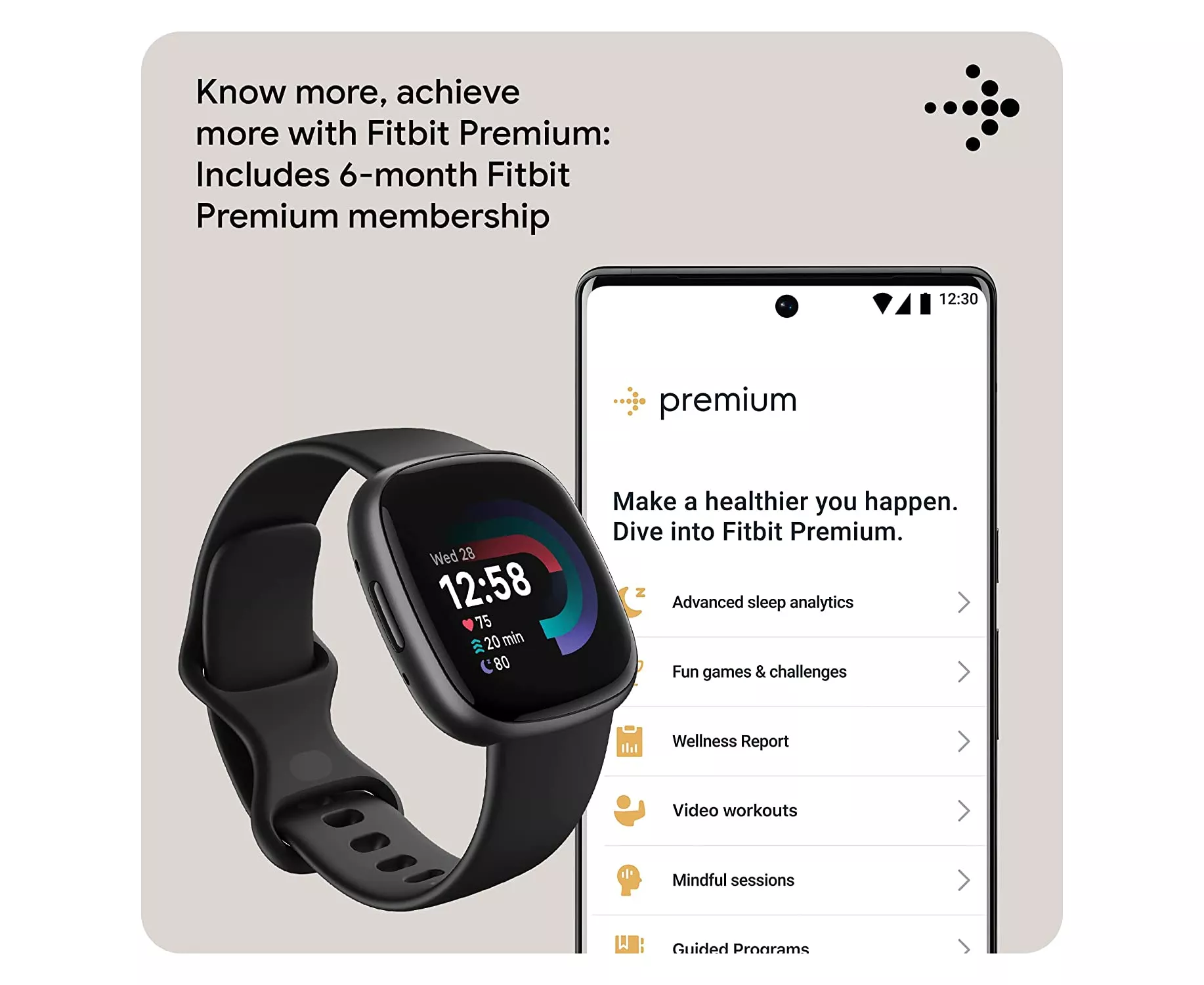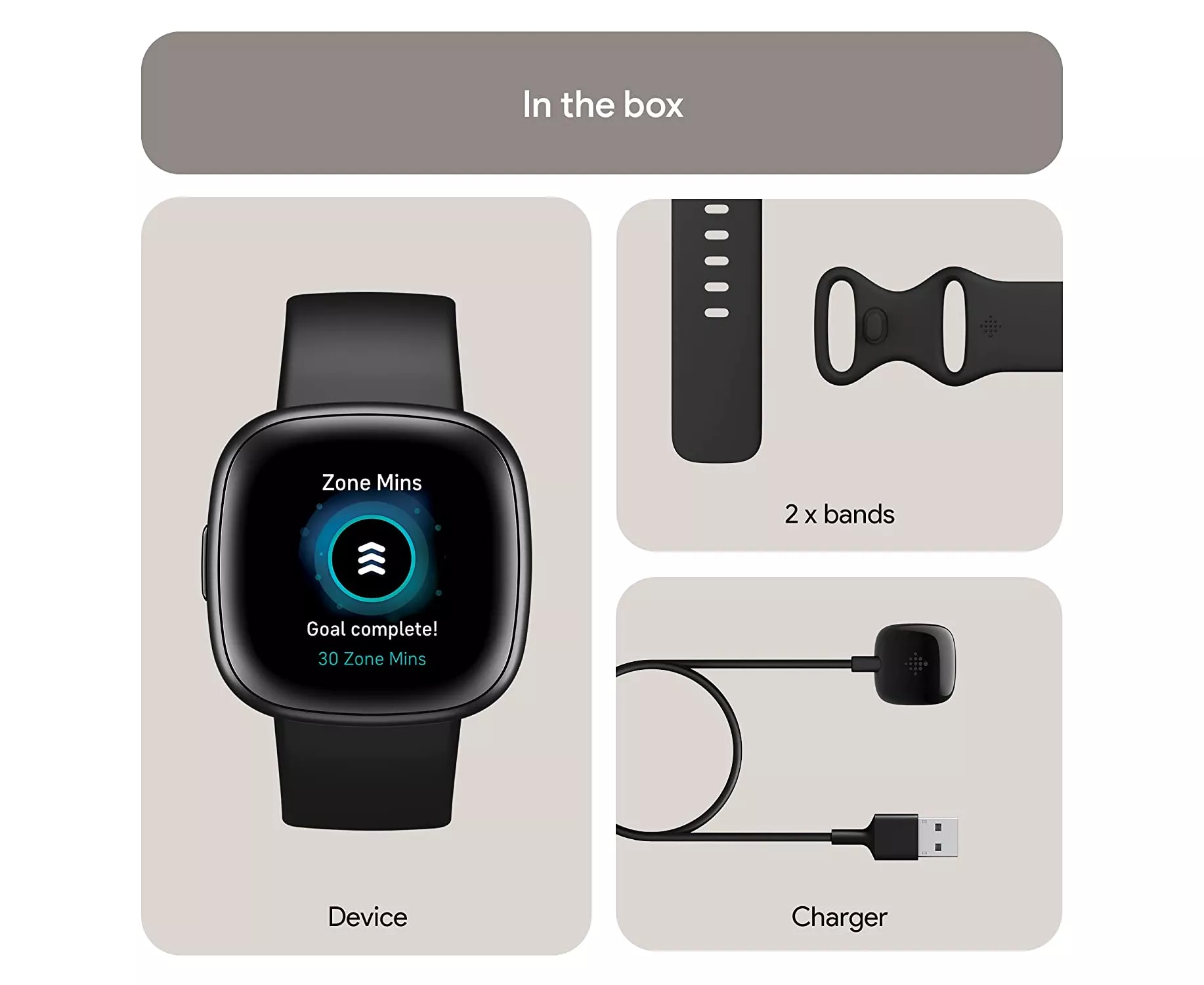 فيتبيت فيرسا 4 - ساعة فيتنس - لون أسود / رصاصي