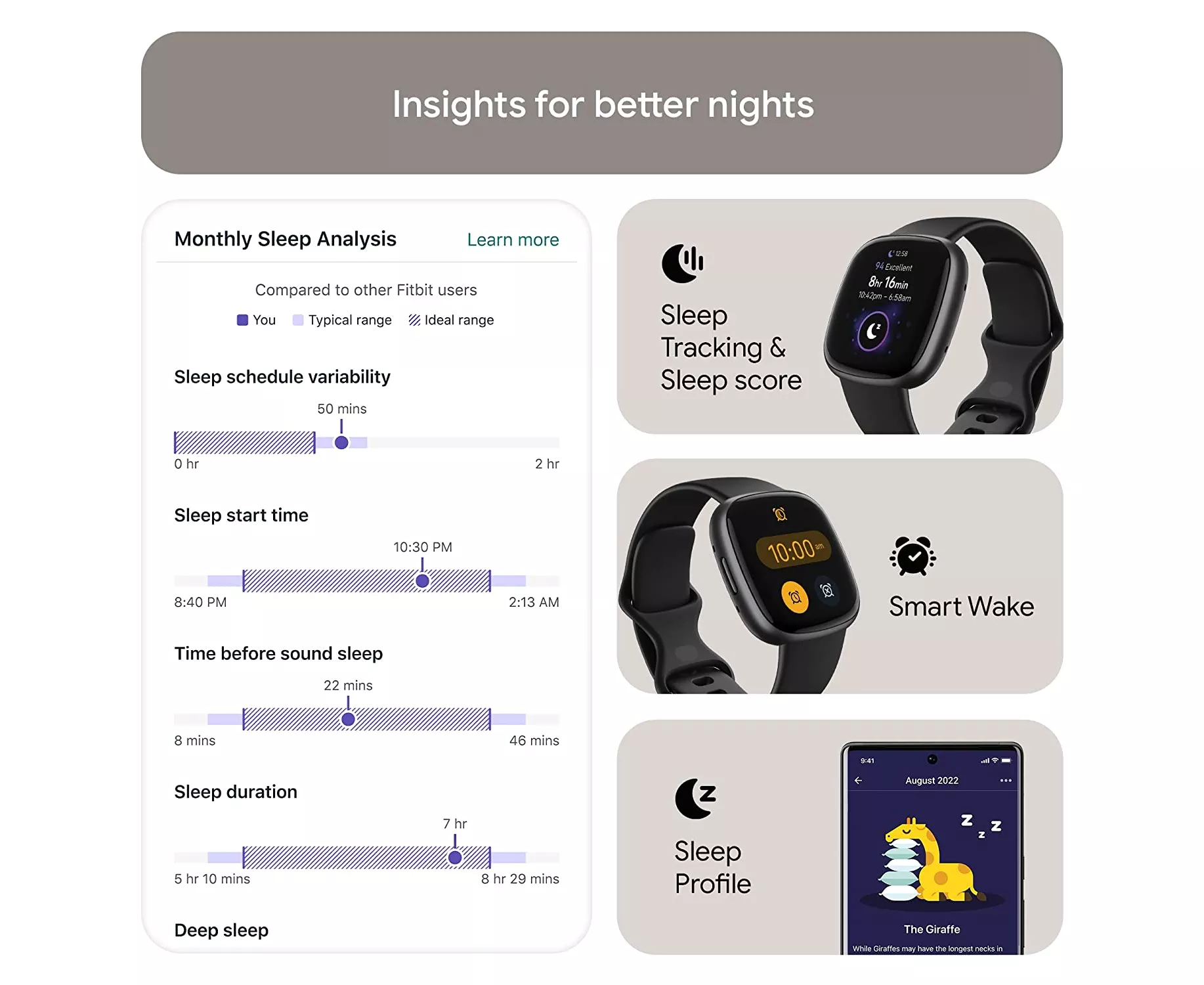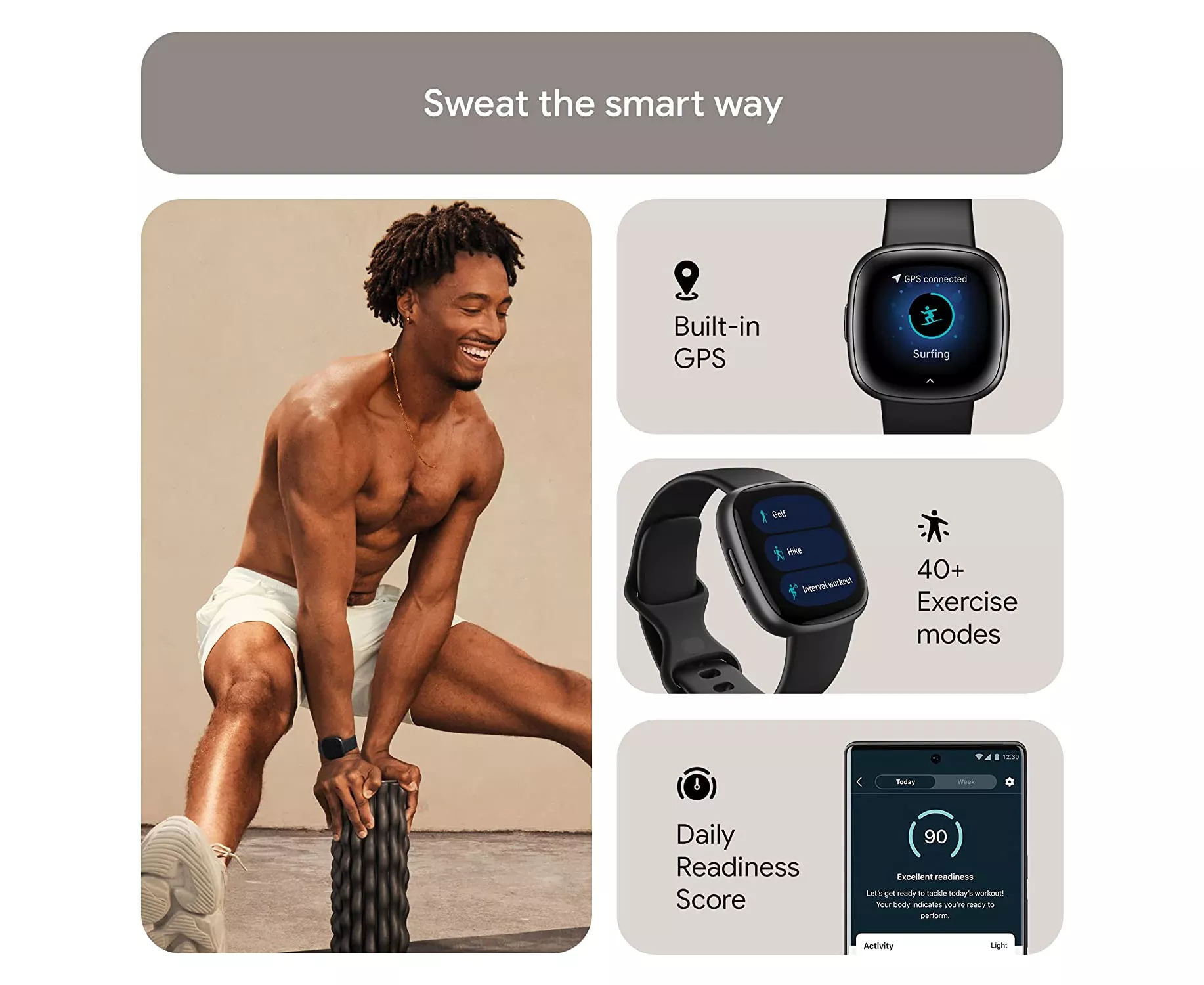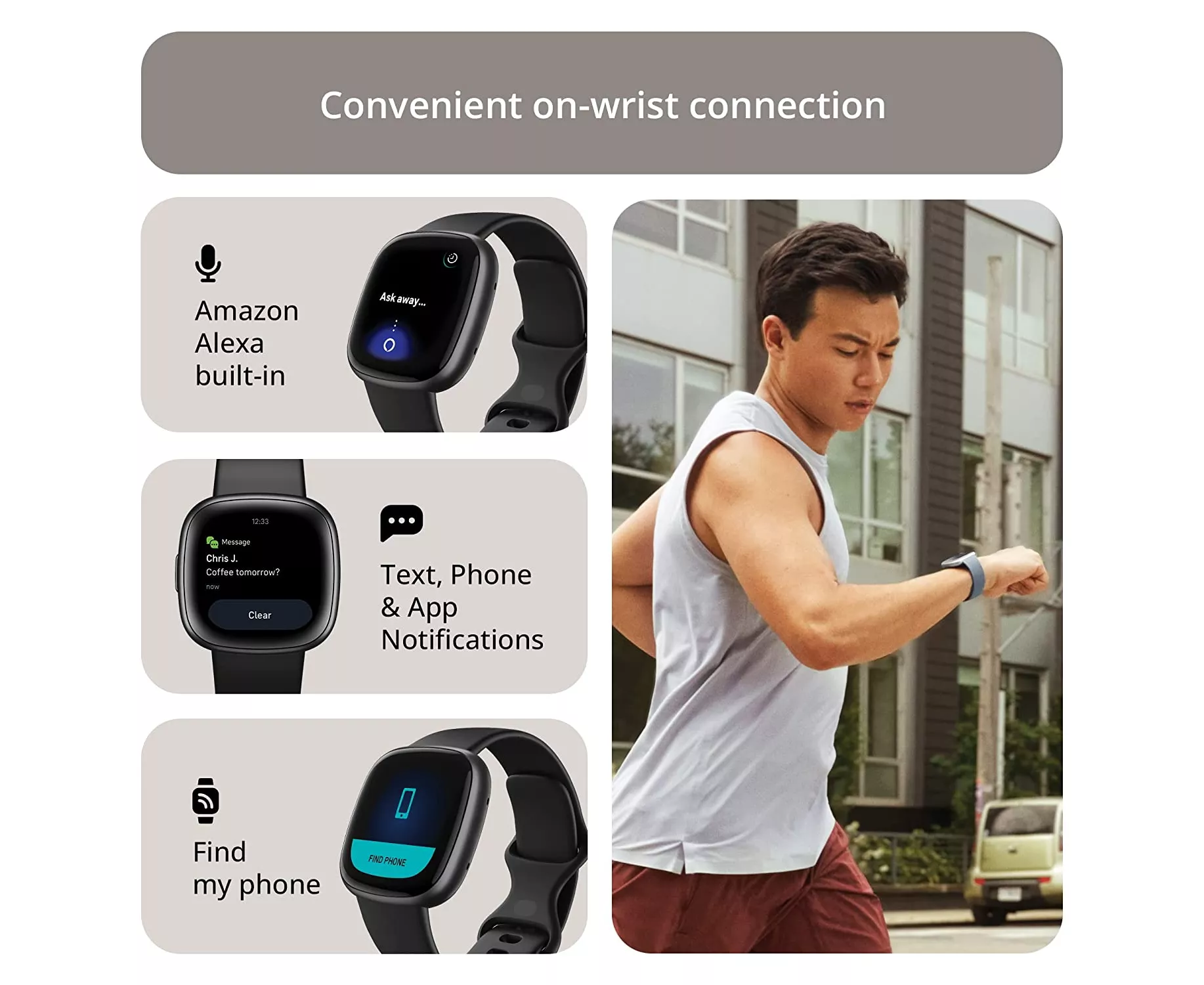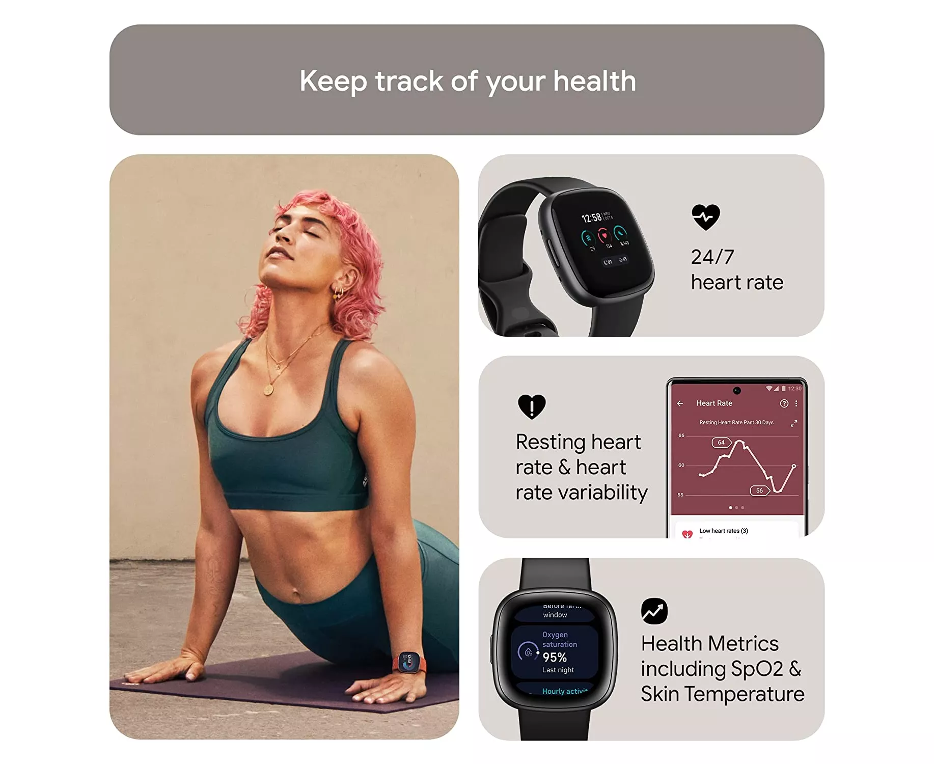 فيتبيت فيرسا 4 - ساعة فيتنس - لون أسود / رصاصي
