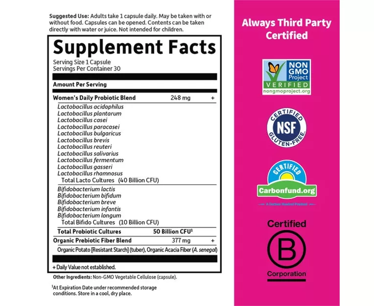 • Promotes Women's Health - Thanks to the addition of Lactobacillus reuteri (L. reuteri) and Lactobacillus (L. fermentum) bacteria.