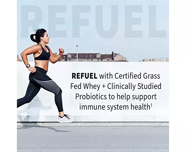 Certified Grass Fed Whey is designed to refuel and repair muscles. Intensive training and exercise breaks down muscle tissue and then the body repairs and rebuilds to make them stronger. One serving delivers 24g complete protein from whey protein isolate as the primary source with some milk protein added to provide some of the beneficial components found only in whole milk, such as immunoglobulins and beneficial growth factors. Our whey delivers all the essential amino acids, and provides 6g BCAA and 4g glutamine, important to help reduce recovery time by stopping muscle breakdown and promoting muscle repair and rebuilding. Lastly we added 2 billion CFU of the clinically studied probiotic B.lactis BL-04 which has been shown to support immune health during intensive workouts.