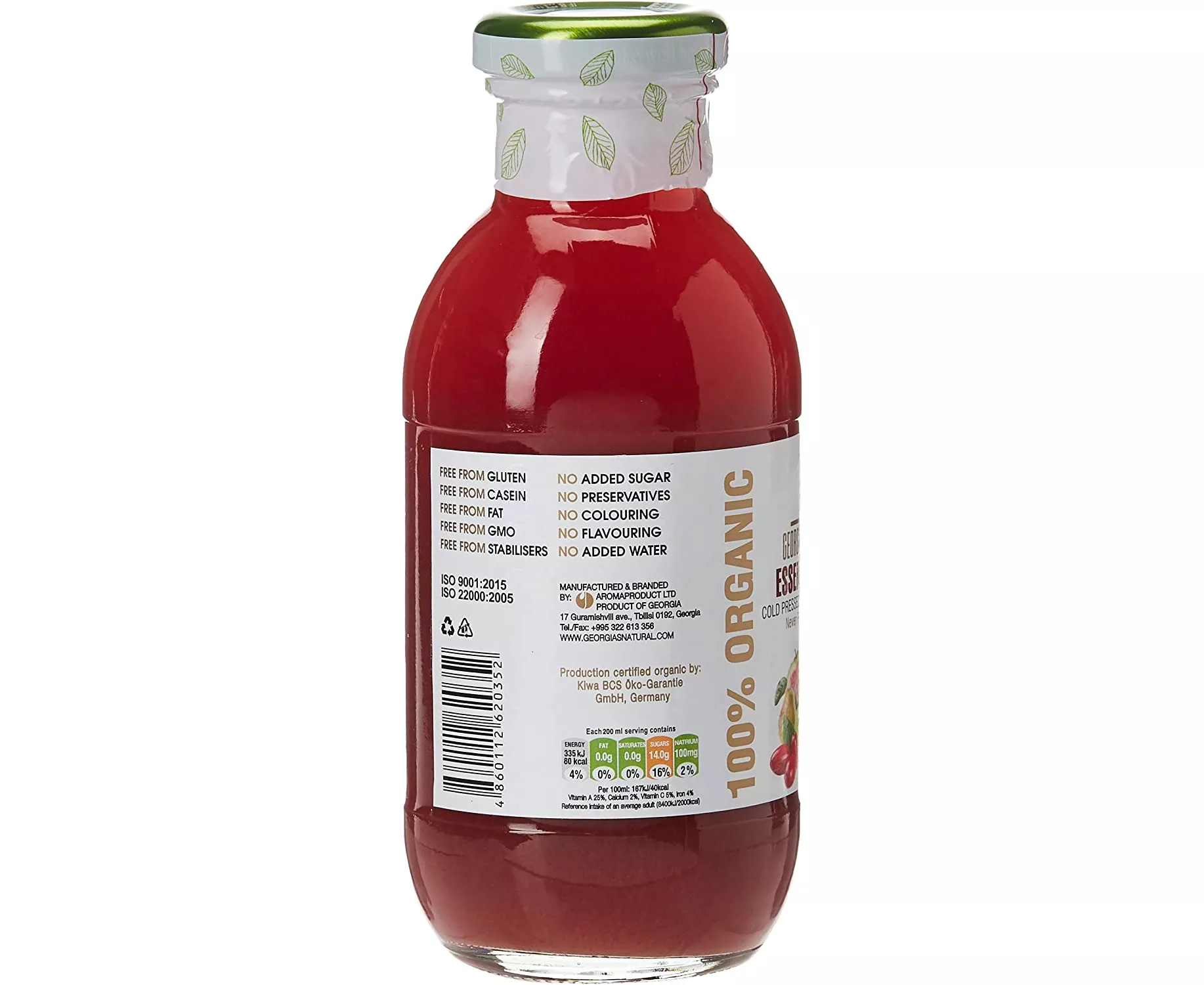 Originated in Georgia, these organic juices are free of preservatives, chemicals, have no added sugar or water. This prestigious brand specializes in the production of natural juices since 1985. The cold press method minimizes oxidation and preserves the vitamins and minerals from the fruits. Their Essential range is a delicious mixture of different vegetables and fruits and the products contain no artificial coloring or flavoring. Just pure, natural & healthy juice.