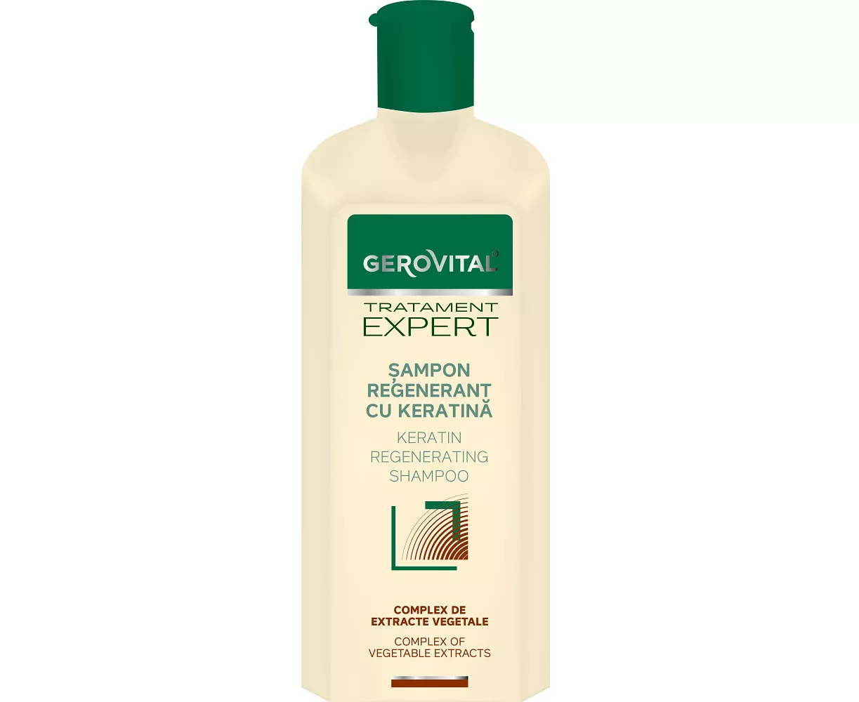 With ingredients such as hydrolysed keratin, Gerovital regenerating shampoo acts directly on the hair restoring the keratin level, a protein that ensures the elasticity of the hair and protects the hair against the destructive effects of external agents. The keratin, vitamins, trace elements and natural extracts that are the basis of this innovating formula, have the role to hydrate the scalp and hair, acting on the entire length of the hair and restoring the neat and smooth aspect.