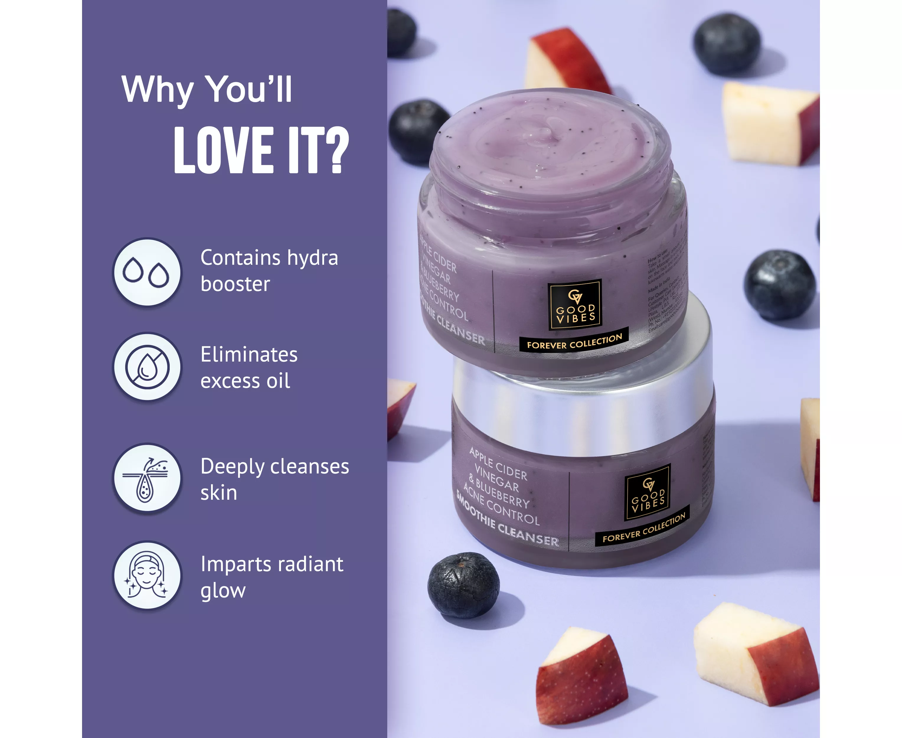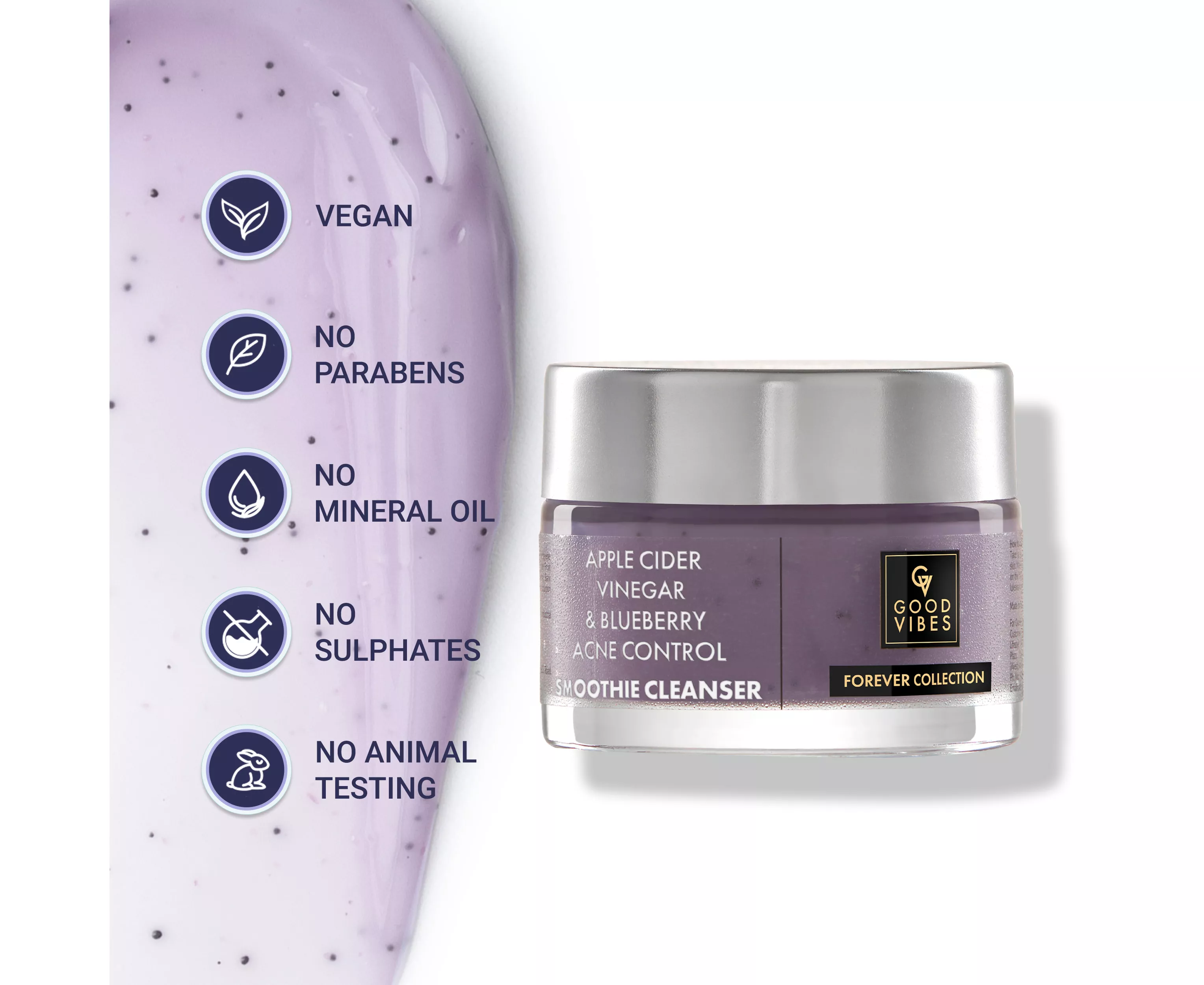 Good Vibes Apple Cider Vinegar and Blueberry Anti Acne Smoothie Cleanser 45g