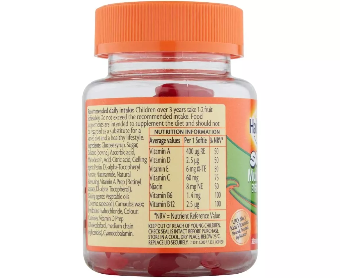 Haliborange strawberry multivitamin softies are a tasty way for your child to get some essential nutrients they need every day. Contains 7 essential vitamins. Haliborange Strawberry multivitamin softies are a tasty way for your child to get some essential nutrients they need every day.