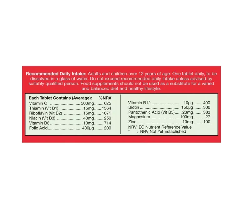 HealthAid B-Vital is a unique combination of essential vitamins and minerals; providing a delicious multivitamin rich in Vitamin B1, B2, B3, B6 and B12 which contributes to the reduction of tiredness and fatigue.