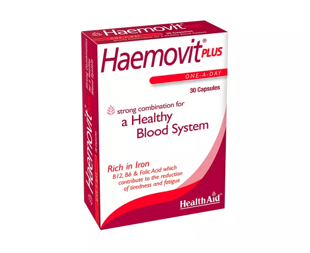 Haemovit Plus Capsules are specially formulated to provide vital nutrients needed for the formation of healthy blood cells and a strong immune system. Rich in Iron, Vitamin B12, Zinc and Copper which contribute to healthy nervous system, increased energy levels and reduction of tiredness and fatigue.
