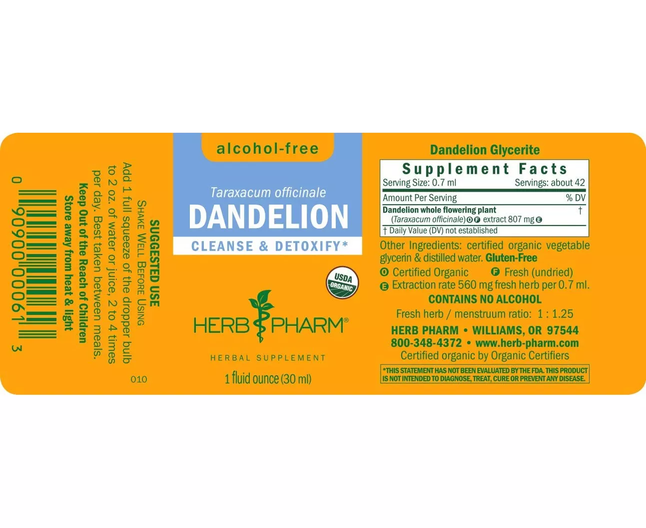 We prepare our alcohol-free Dandelion glycerite from fresh (never dried) whole Certified Organic Taraxacum officinale plants (root, leaf and flower) grown on our farms in southern Oregon. The plants are grown in neat rows, are harvested each spring and often have taproots over a foot in length. To assure optimal extraction of the herb's bioactive compounds, the plants are hand-harvested while in full flower and are then promptly extracted while still fresh and succulent.