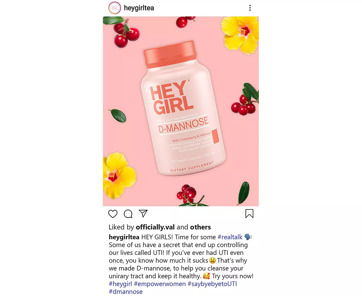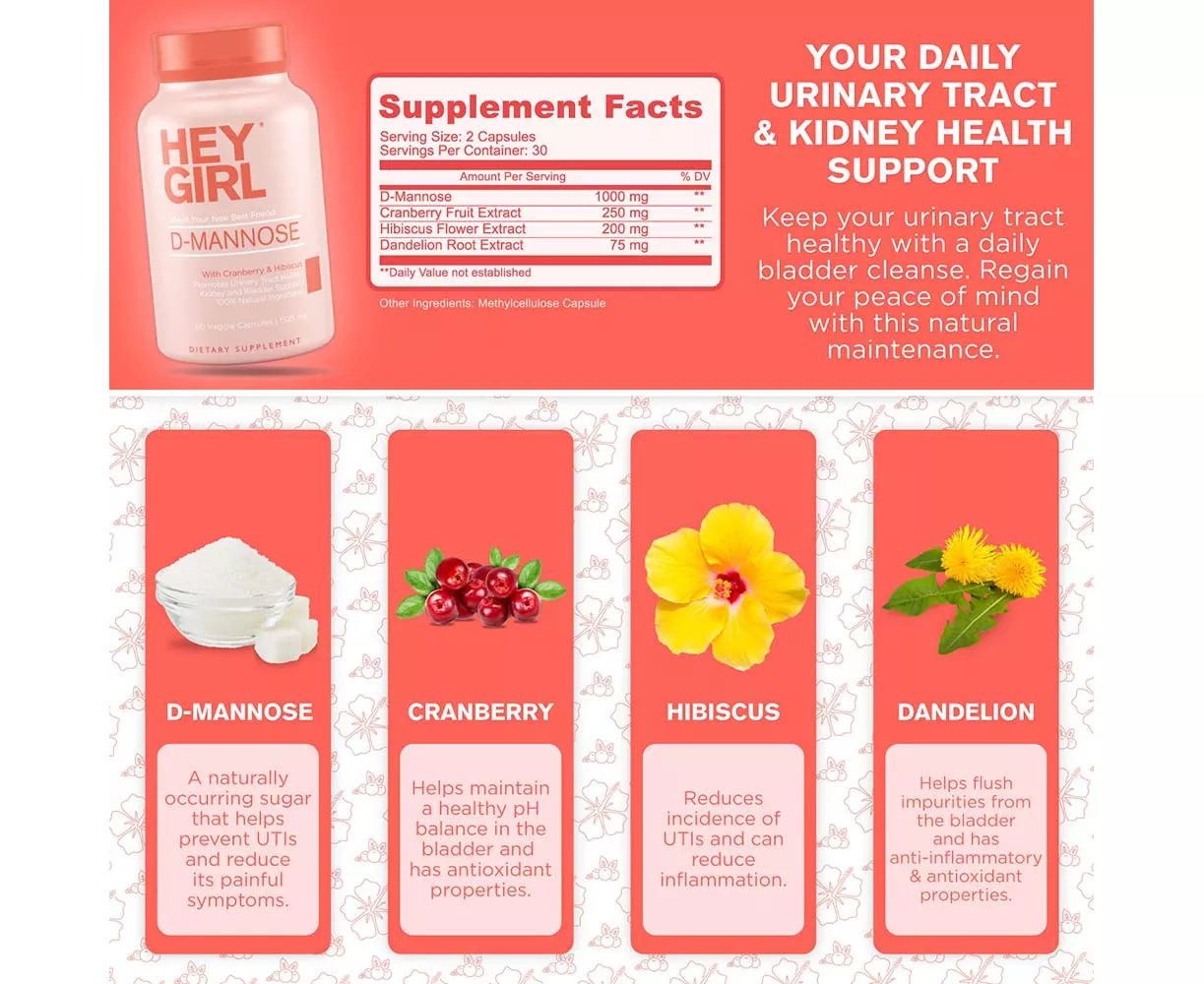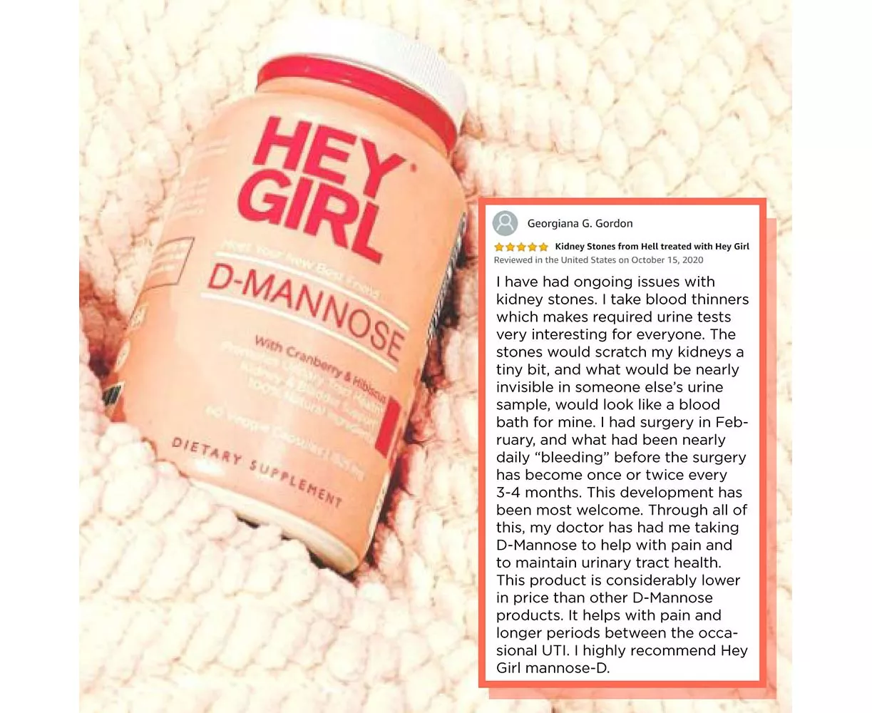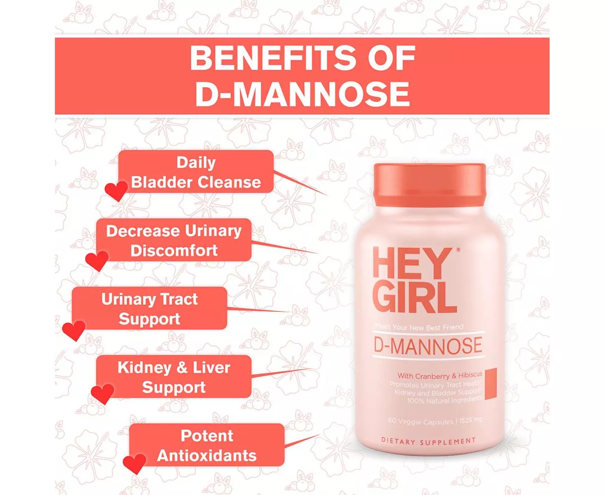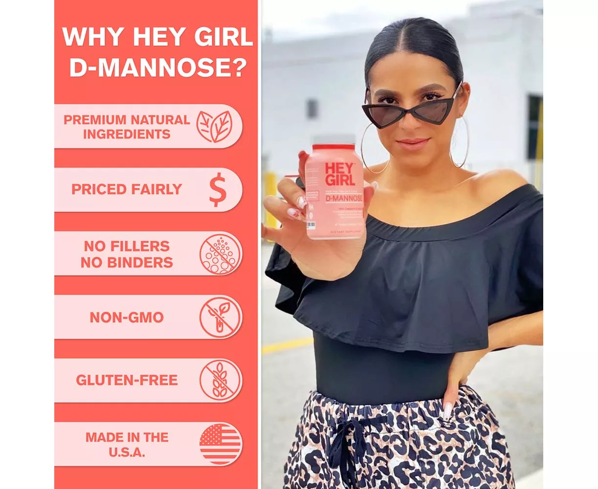 Tired of all the trips to the bathroom, the sudden need to pee, that sting, and of course that constant worry about when the next uti will come? That's why we created hey girl nutrition d-mannose just for you. It's a unique, all-natural blend of key ingredients that are known for cleansing your urinary tract and addressing discomfort. Girl, we want you to stay uti be gone! Regain your peace of mind with d-mannose.