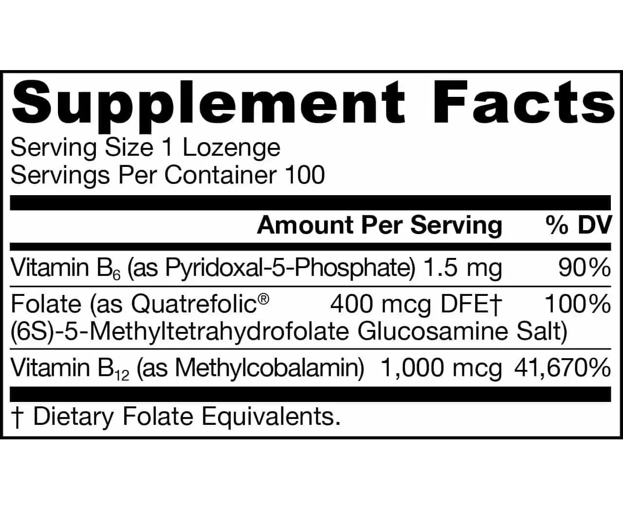 Provides methyl b-12 plus methyl folate and pyridoxal 5-phosphate in a convenient lozenge form.