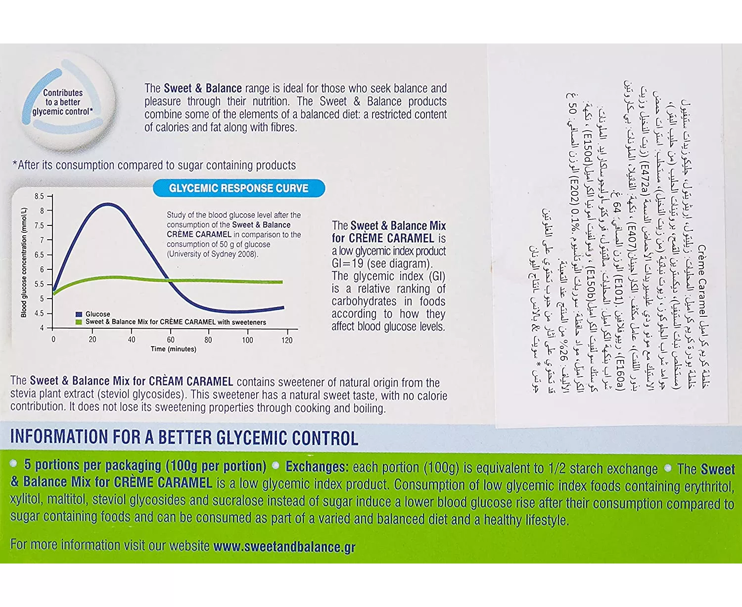 The Sweet and Balance range is ideal for those who seek balance and pleasure through their nutrition. The Sweet and Balance products combine some of the elements of a balanced diet: a restricted content of calories and fat along with fibers. Sweet and Balance Cream Caramel is a very low glycaemic index product. The Glycemic Index (GI) is a relative ranking of Carbohydrates in foods according to how they affect blood glucose levels. Sweet and Balance Cream Caramel contains sweetener of natural origin from the stevia plant (Ste viol glycosides). This sweetener has a natural sweet taste, with no calorie contribution. It does not lose its sweetening properties through cooking and boiling.