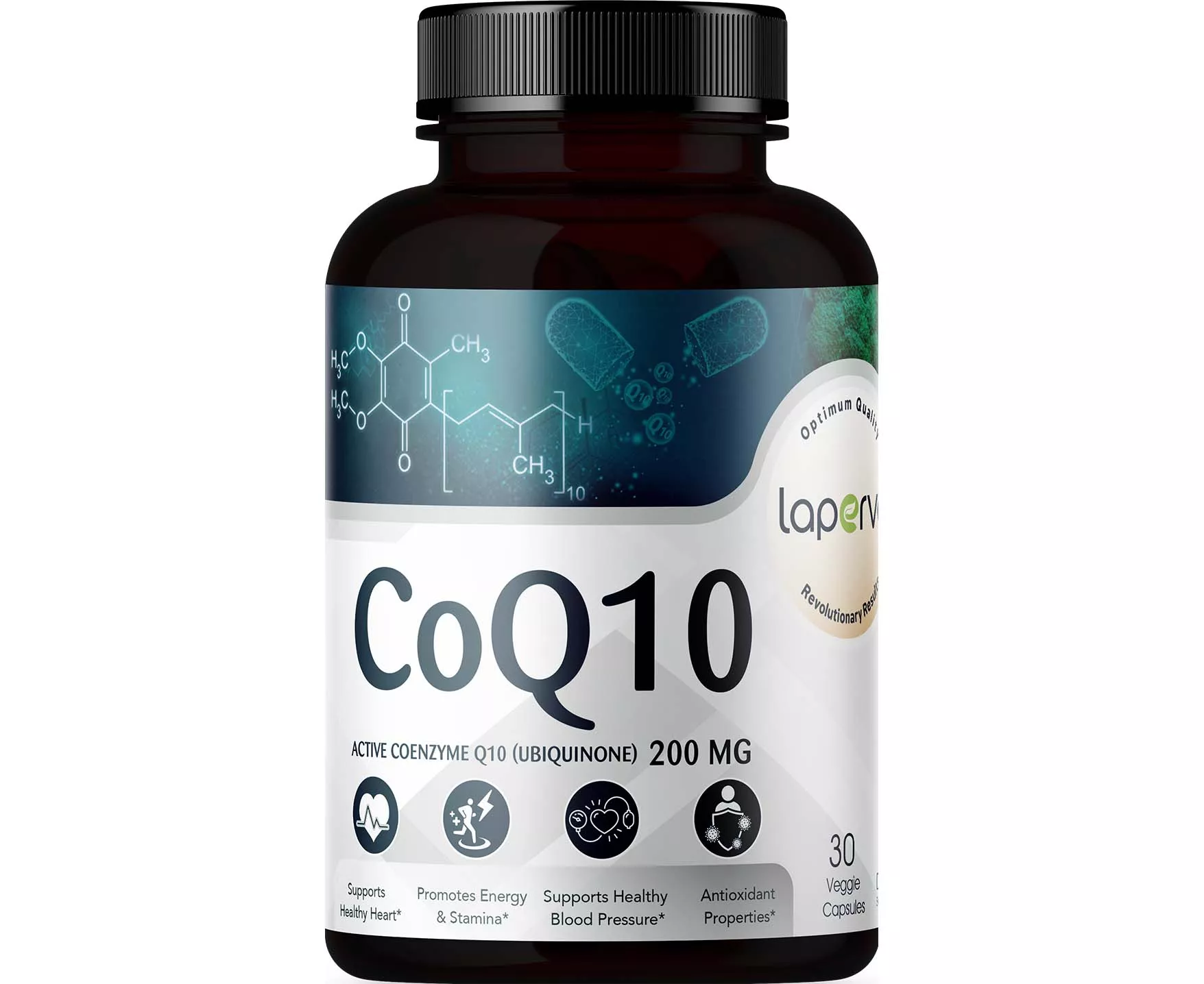 Laperva coq10 is a vitamin also known as ubiquinone, a powerful plant-derived antioxidant to work on energy production for people with heart disease, lower lipoprotein cholesterol, and aging, help lower blood pressure and lower the risk of heart disease. it helps relieve muscle weakness and pain, reduces the frequency of these headaches, and helps improve sperm quality in men and reduces the number and quality of eggs in women.