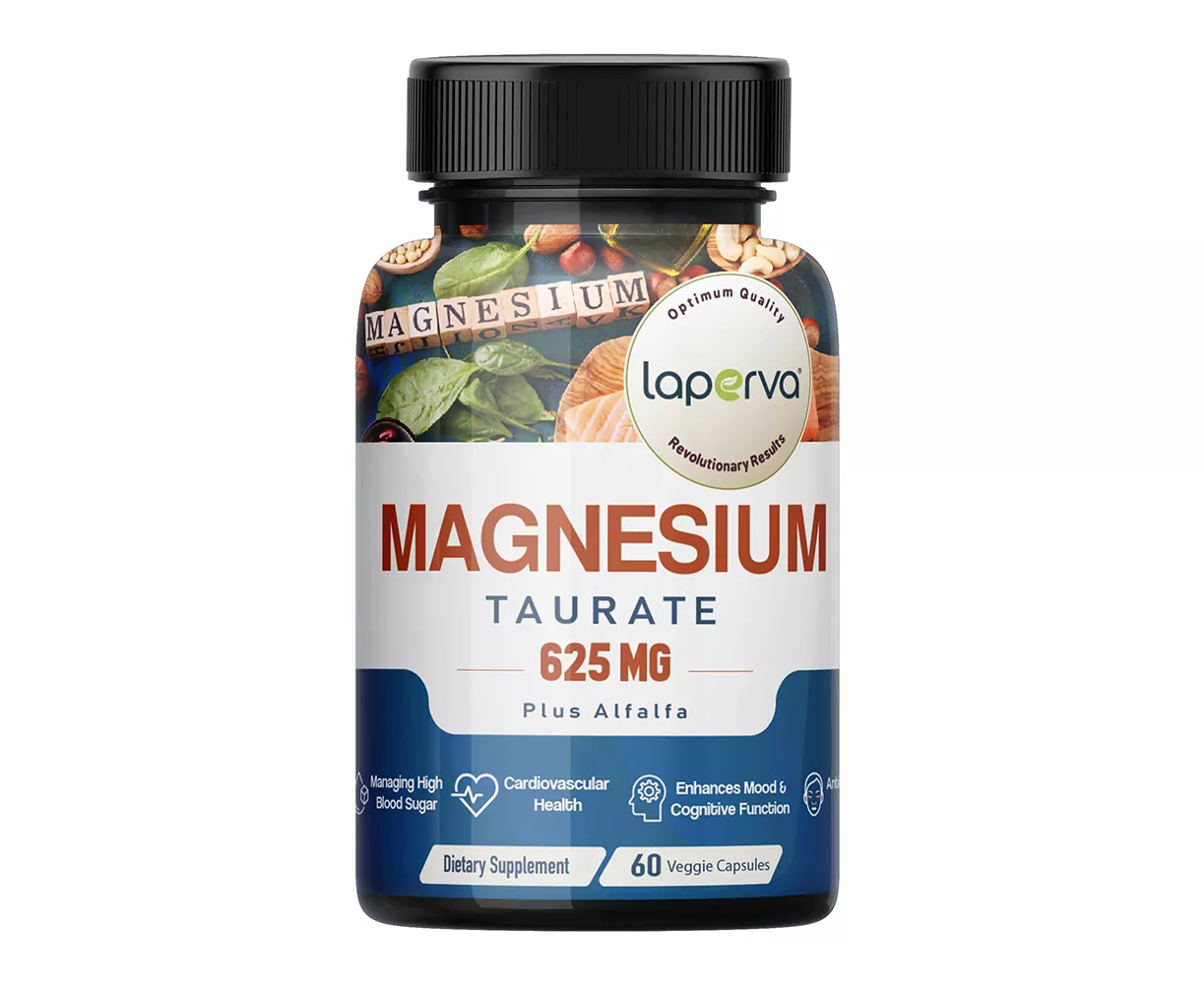 Laperva Magnesium Taurate is an Ideal Formula for Regulating Blood Sugar Levels, Controlling Blood Pressure, Improving Nervous System Functions, and Resisting Stress, as the Formula Includes the Union of Magnesium and the Amino Acid Taurine, in addition to the Alfalfa Herb Rich in Magnesium, Which Also Contains Many Elements Such as Calcium and Iron. The Presence of Taurine Has a Synergistic and Effective Effect on the Functions of Magnesium in Supporting Heart and Brain Health and Preventing the Development of Type 2 Diabetes.