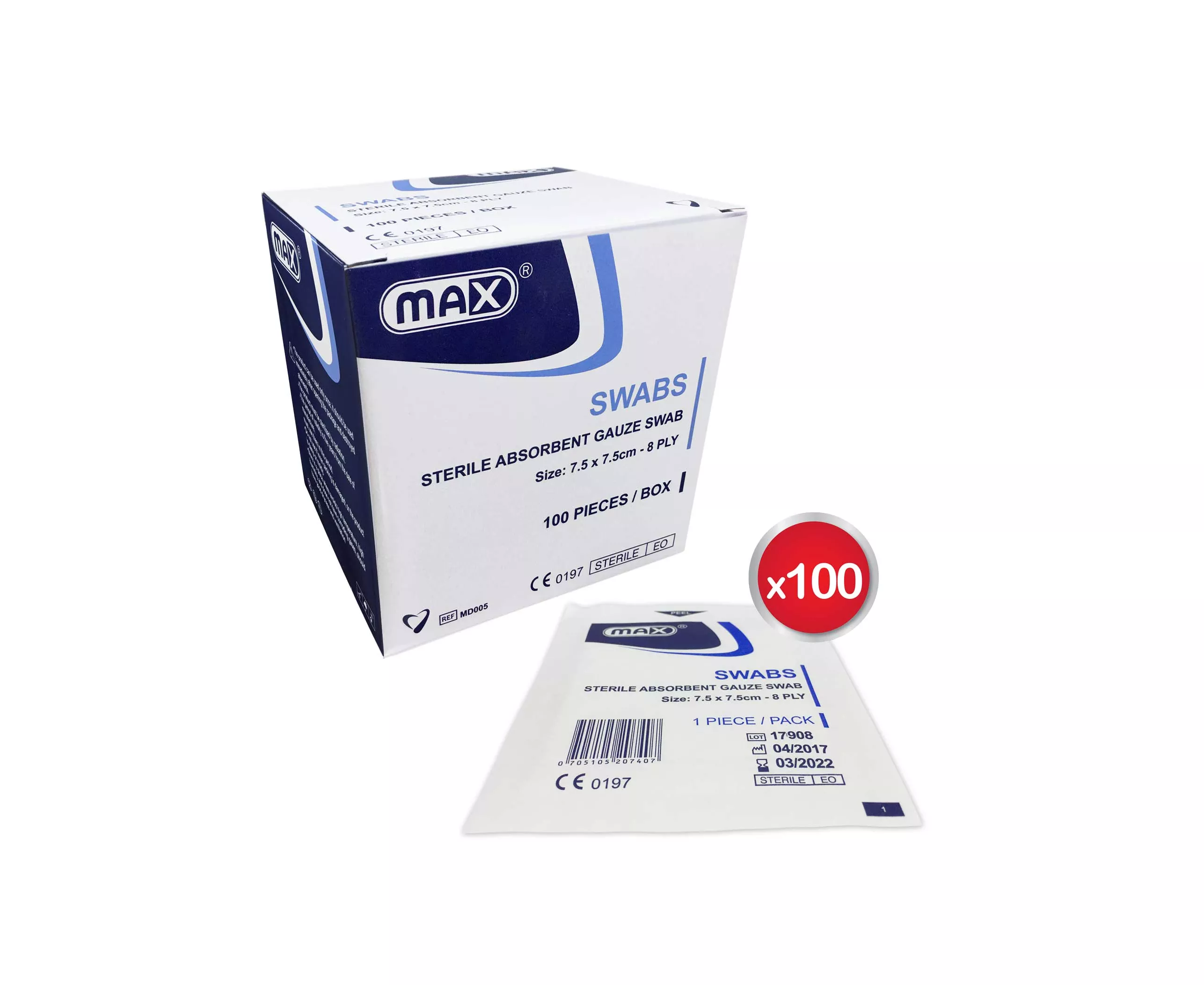 Max Sterile Gauze Swab 8ply 7.5cmx7.5cm 100pcs/Box