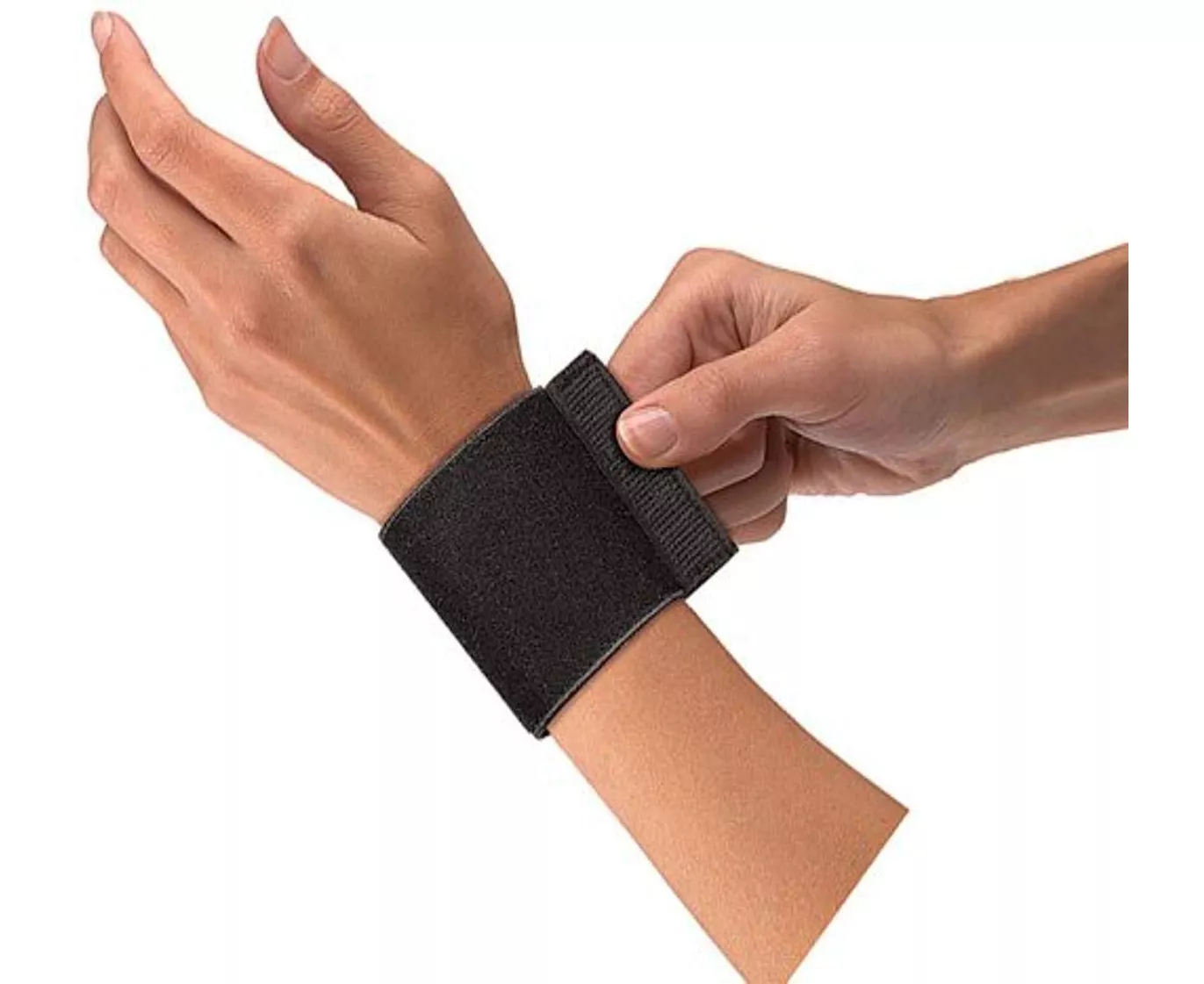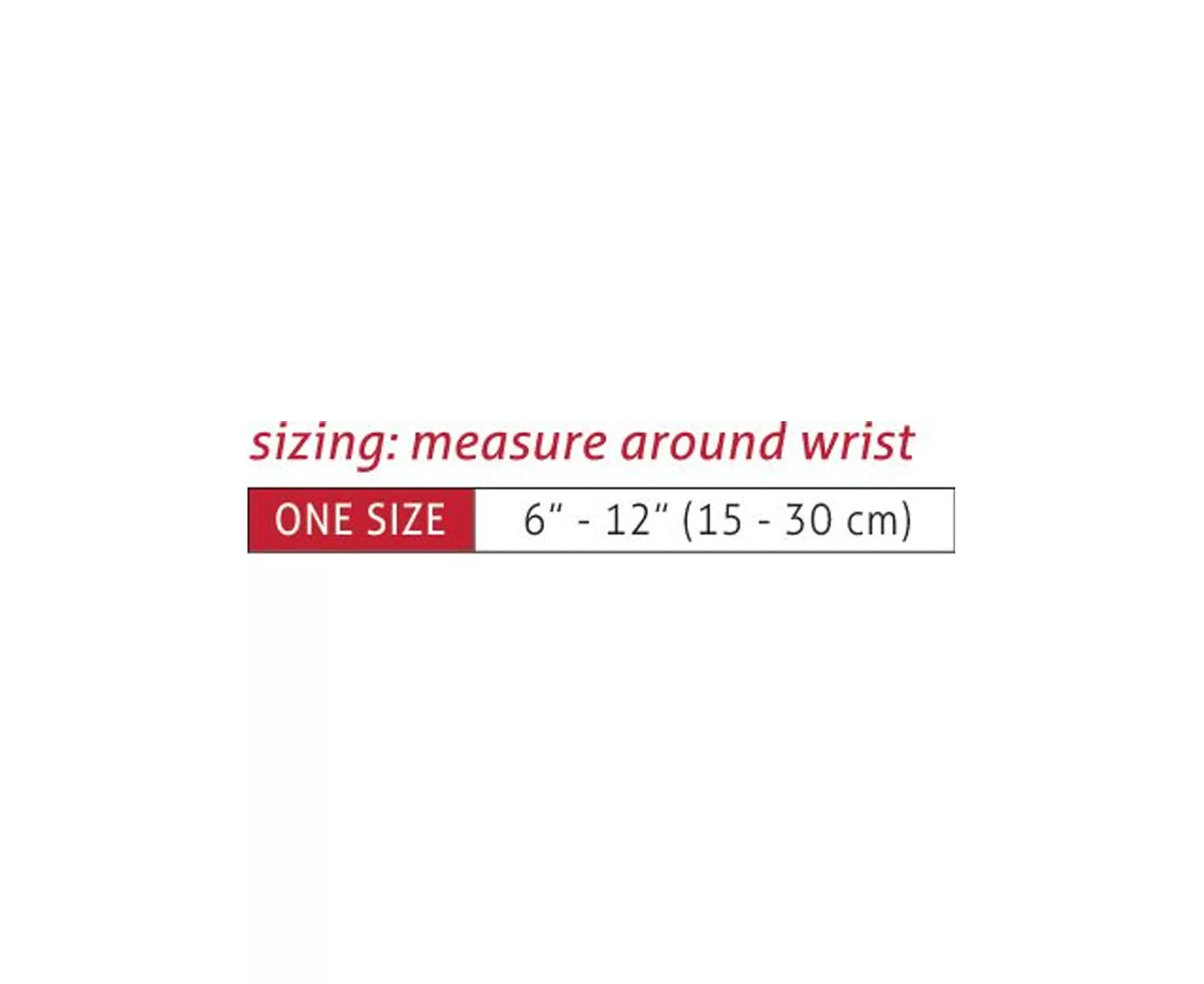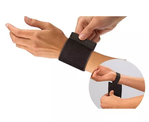 Elastic loop makes for easy on and off. Wraparound strap provides adjustable compression.