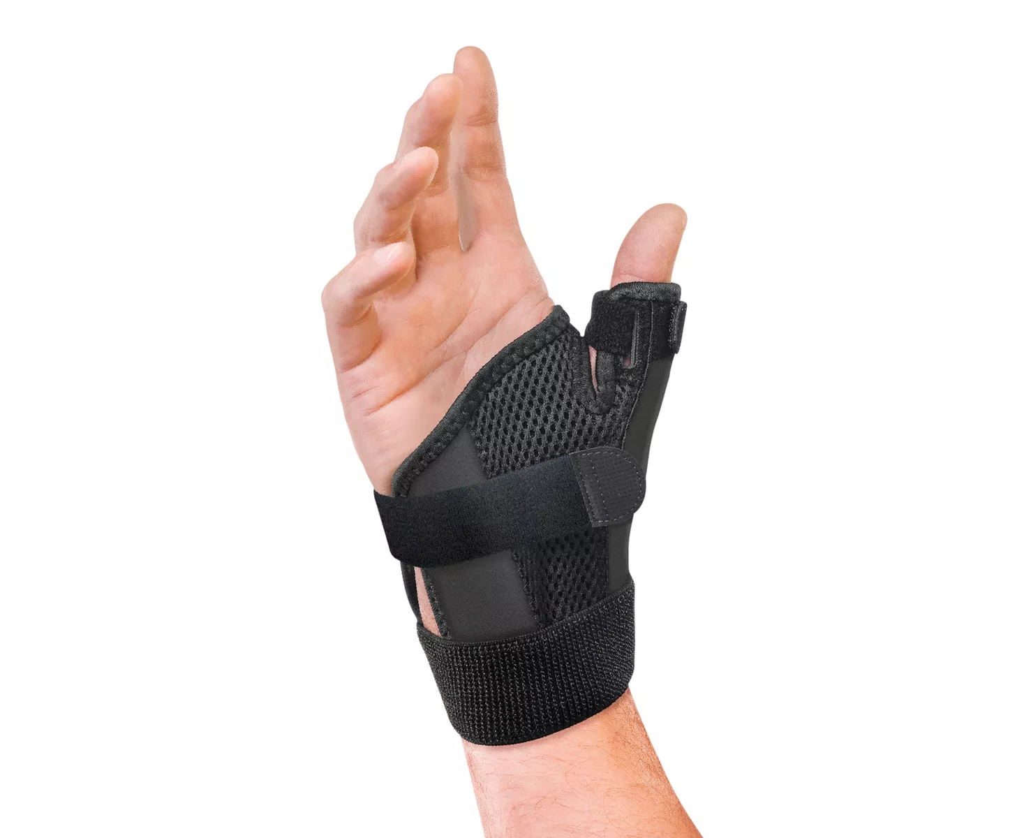Helps support and limit the motion of the thumb (Metacarpophalangeal or MCP Joint). Our Thumb Stabilizer allows for full-finger movement. Ideal for use on soft tissue injuries, ligament strains, gamekeeper’s thumb, osteoarthritis, and degenerative joint disease. Provides warmth to the thumb area and joint. Fits left or right hand.