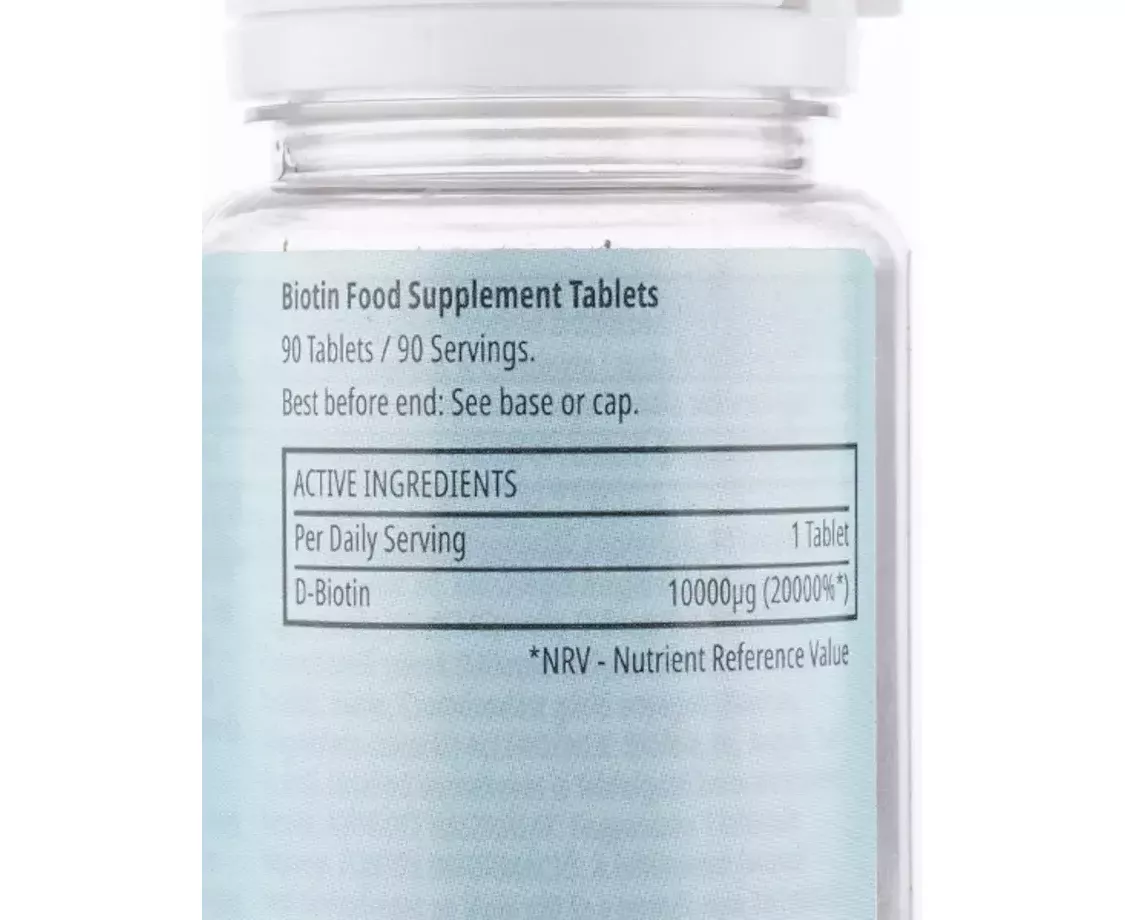 INGREDIENTS: Bulking Agents (Microcrystalline Cellulose, Dicalcium Phosphate), Biotin, Anti-Caking Agents (Silica, Magnesium Stearate).