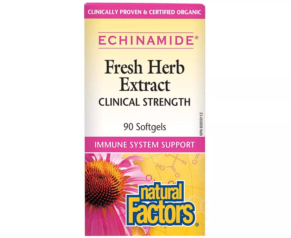 Natural Factors Anti Cold Fresh Herb Extract Clinical Strength of fresh echinacea flowers to strengthen the immune system and protect the respiratory system from infection, colds and flu.