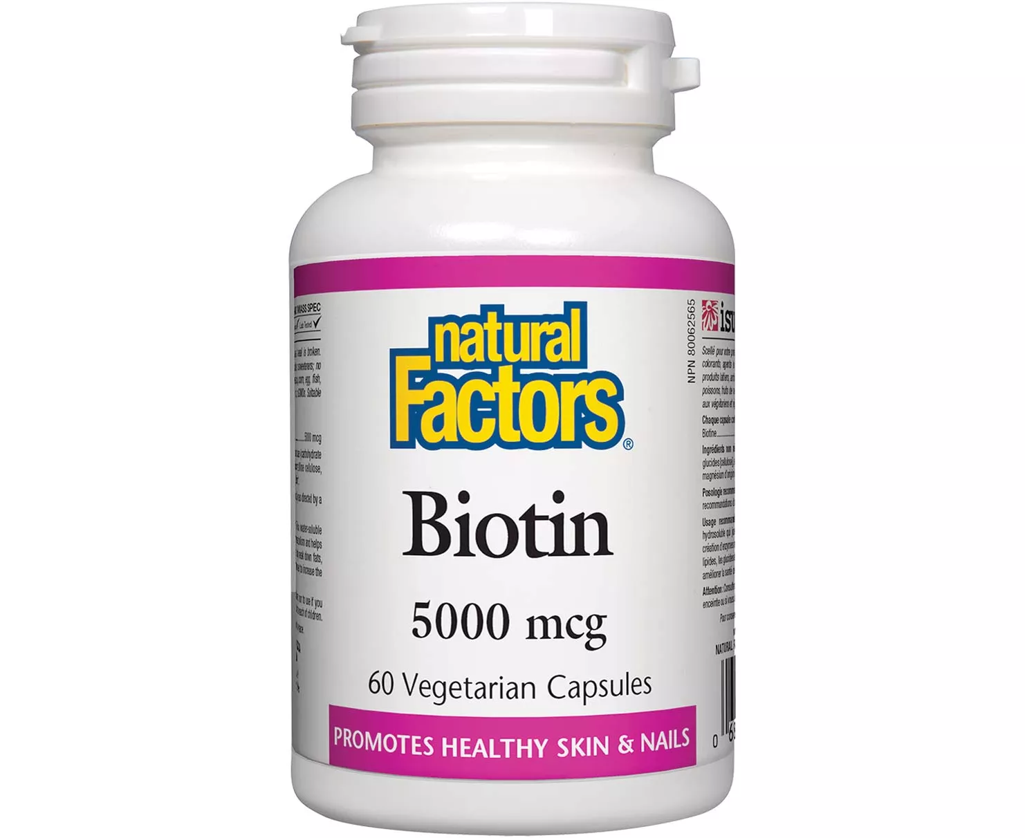 Natural Factors Biotin, a vitamin B7 that supports the optimization of metabolic processes, improves energy production and maintains overall health. Biotin is an enzyme for the production of fatty and nucleic acids and stimulates the production of glycogen.