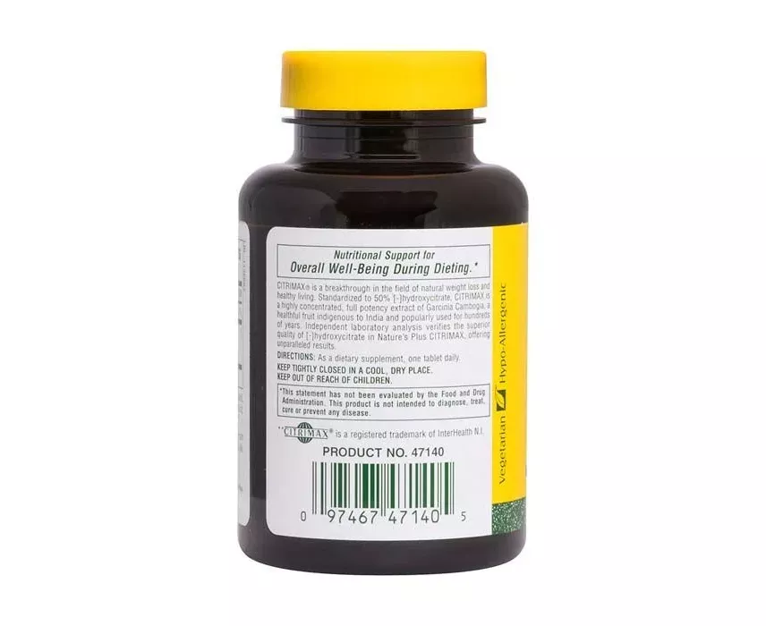 Citrimax is a breakthrough in the field of natural weight loss and healthy living. Standardized to 50% [-] hydroxycitrate, Citrimax is a highly concentrated, full potency extract of Garcinia Cambogia, a healthful fruit indigenous to India and popularly used for hundreds of years. Independent laboratory analysis verifies the superior quality of [-] hydroxycitrate in Nature€™s Plus Citrimax, offering unparalleled results.