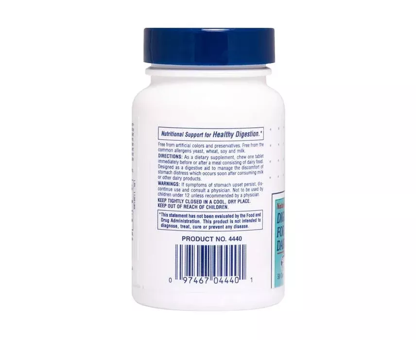 As a dietary supplement, chew one tablet immediately before or after a meal consisting of dairy food. Designed as a digestive aid to manage the discomfort of stomach distress that occurs soon after consuming milk or other dairy products.