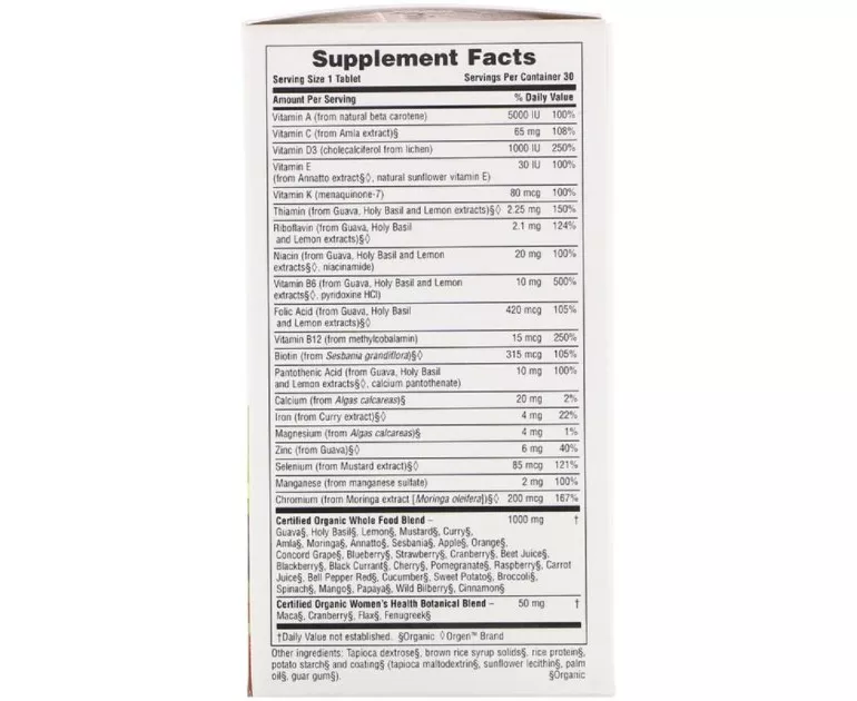 Source of Life Garden Organic Women's Once Daily Multi features: