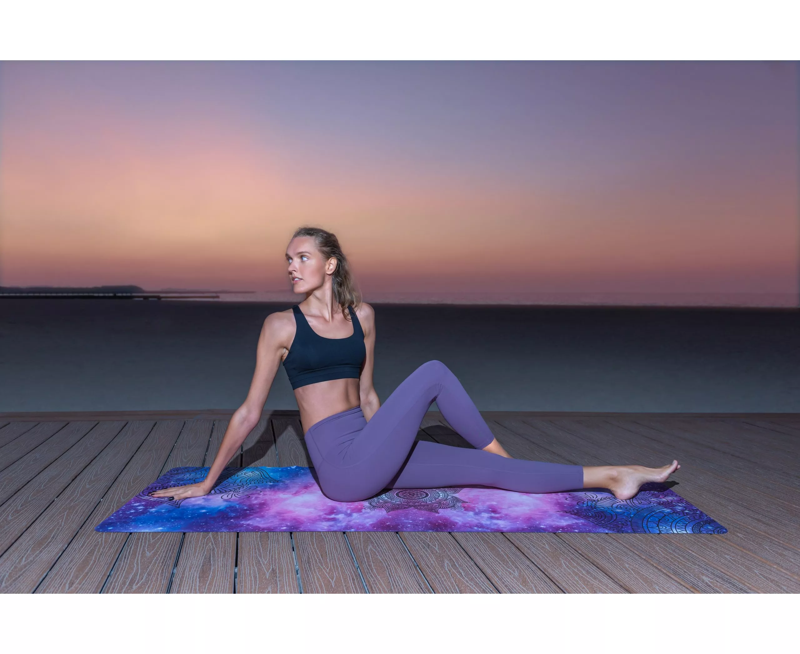 The most beautiful yoga mat ever. Our galaxy travel mat is a symbol of hope, aspirations, and desires for the future. If in your dream you see creatures from another galaxy, this implies that your hidden potential is beginning to come forward. This potential is your quality that makes you feel more diverse from other individuals. Practice on this eco-friendly travel companion and feel like doing yoga in your own galaxy. N.E.A.T’s yoga mats are designed with the aim to bring relief from the daily dins & chaos. The mats are spacious to help you find your own private space and experience calmness within – with yourself. The mats use skin-friendly material which truly enhances your yoga routine. Experience calmness on this piece of soft land made just for your soul. The ultra-absorbent surface keeps your mat dry during your workout and prevents sliding. This microfiber suede layer also lets you grip better the more you sweat. So for a perfect grip at the beginning of your workout, you can spray some water on the mat