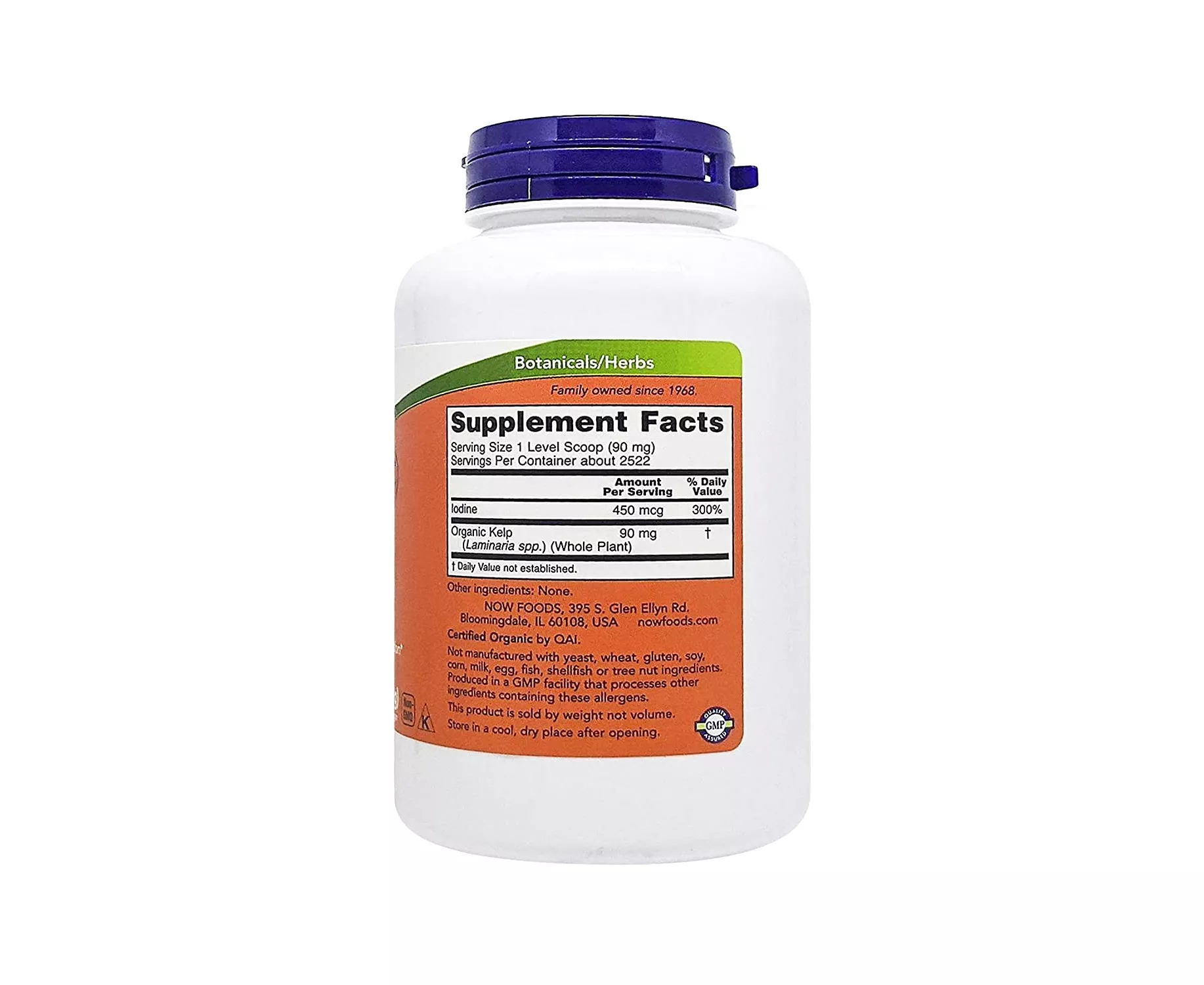 Kelp is a large, leafy seaweed belonging to the brown algae family that grows in "forests" in the colder waters of the world's oceans. Kelp has been used for centuries as an important nutritious staple ingredient in Chinese, Japanese, and Korean cuisines. It is also an excellent source of iodine, which has been shown to be essential for healthy thyroid function.