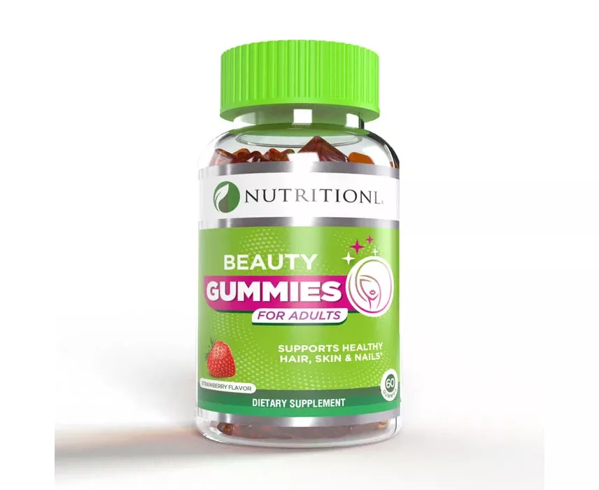 NUTRITIONL Beauty Gummies contains 5000 mcg of Biotin that promotes healthy Hair, Skin, and Nails. Vitamin C supports collagen production and helps slow down the aging process. Vitamin E acts as a potent antioxidant to protect from oxidative stress. Vitamin B12 regulates skin pigmentation and assists the metabolism of protein, promoting the growth of healthy skin cells and repair of damaged skin.