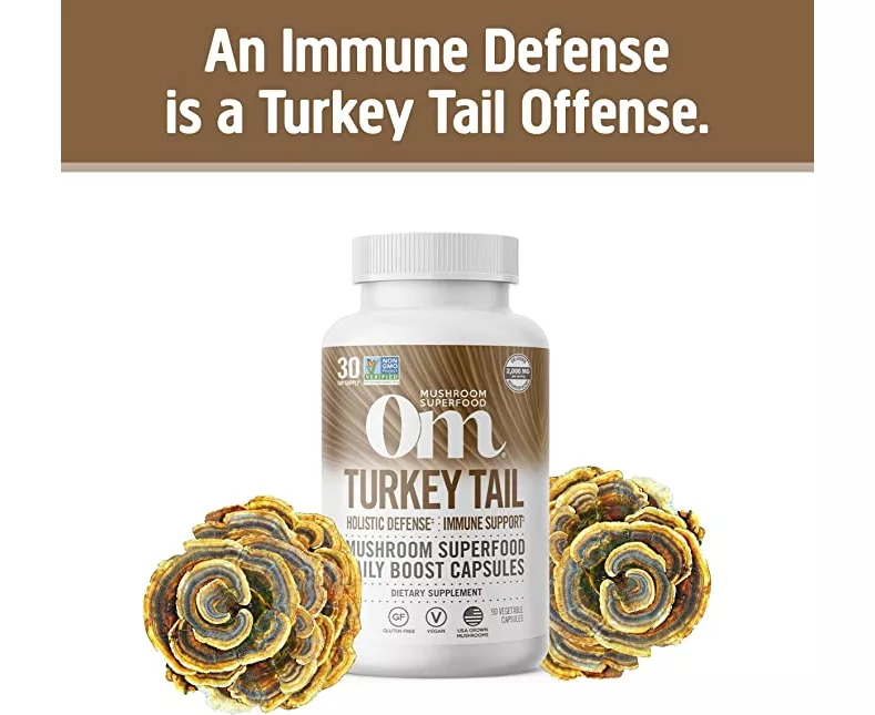 An immune defense is a turkey tail offense. Turkey Tail acts as powerful immunity promoter and can help elevate wellness and a healthy gut. Om Turkey Tail capsules can be your immune defense secret weapon.