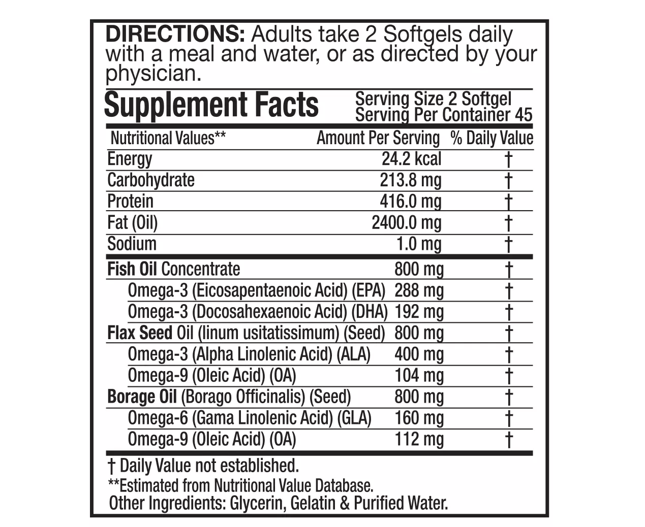 A source of natural omega 3, 6 & 9 fatty acids for the maintenance of good health. Unique high potency supplement rich in EPA, DHA, GLA and ALA.