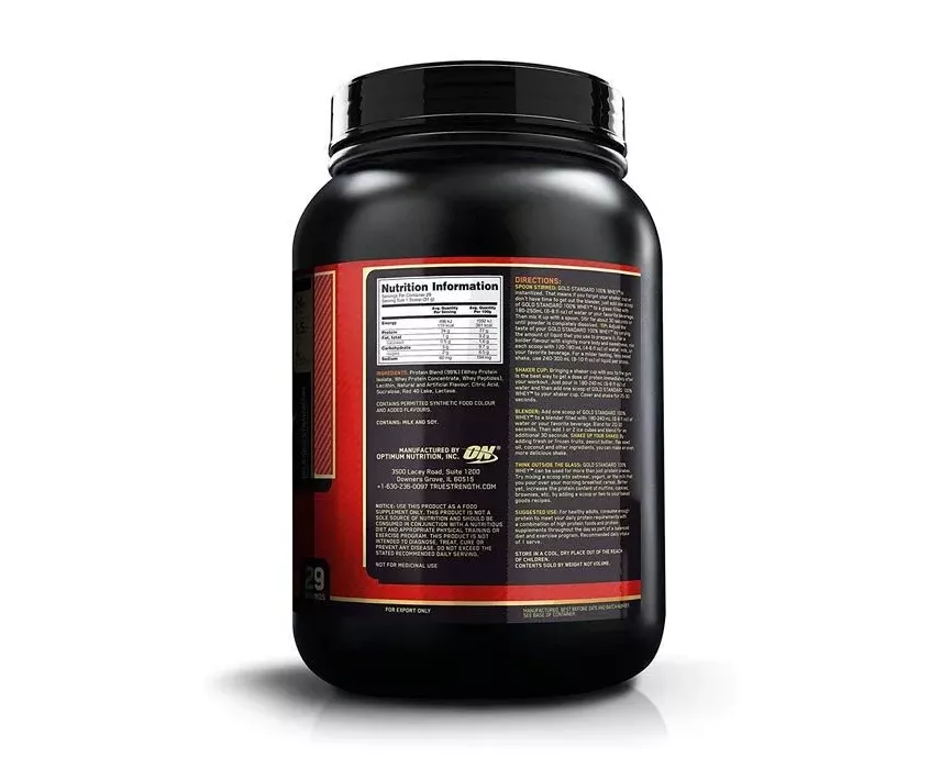Blender: Add one rounded scoop of Gold Standard 100% Whey„¢ to a blender filled with 6-8 oz of water, nonfat milk, or your favorite beverage. Blend for 20-30 seconds. Then add 1 or 2 ice cubes and blend for an additional 30 seconds. SHAKE UP YOUR SHAKE: By adding fresh or frozen fruits, peanut butter, flaxseed oil, coconut, and other high-energy ingredients, you can transform your shake into a delicious high-protein meal. STACK YOUR SHAKE: You can make Gold Standard 100% Whey„¢ an even more powerful recovery product by adding supplements like creatine, BCAA, and concentrated carbohydrate powders.