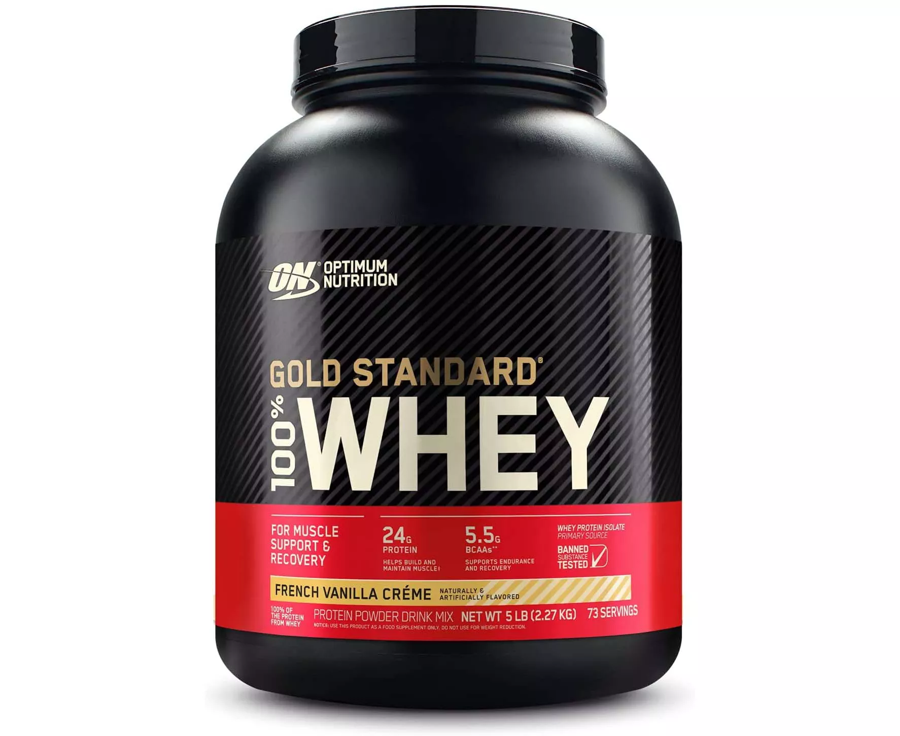مسحوق بروتين مصل اللبن جولد ستاندرد 100%بنكهة أيس كريم الفانيليا من أوبتيموم نيوتريشن 5 رطل