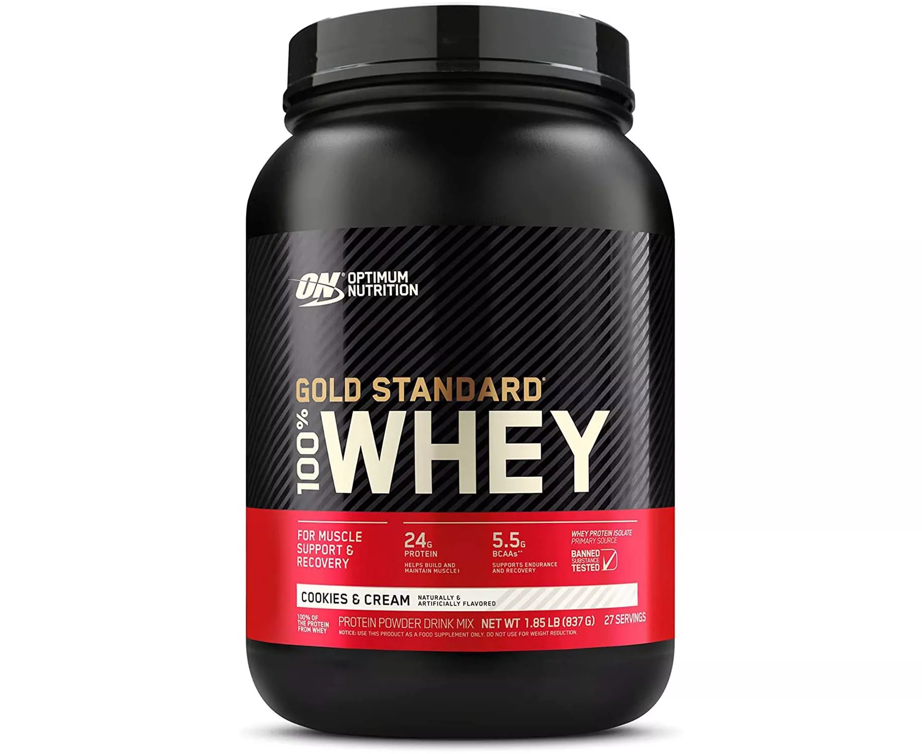 Optimum Nutrition Gold Standard 100% Whey is made of whey isolate, which is one of the purest types of protein and is the first source of protein for building muscle. It contains essential amino acids that are not manufactured by the body, including the three BCAAs (leucine, isoleucine and valine).