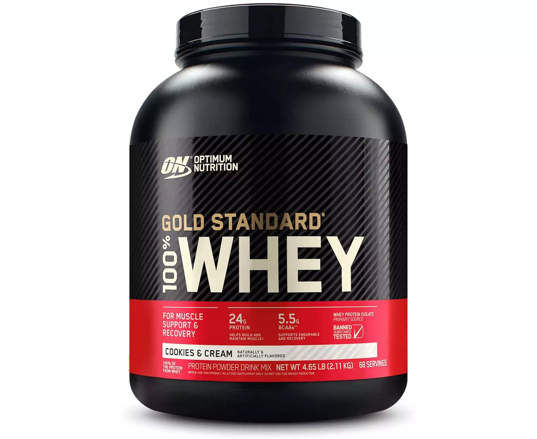 Optimum Nutrition Gold Standard 100% Whey is made of whey isolate, which is one of the purest types of protein and is the first source of protein for building muscle. It contains essential amino acids that are not manufactured by the body, including the three BCAAs (leucine, isoleucine and valine).