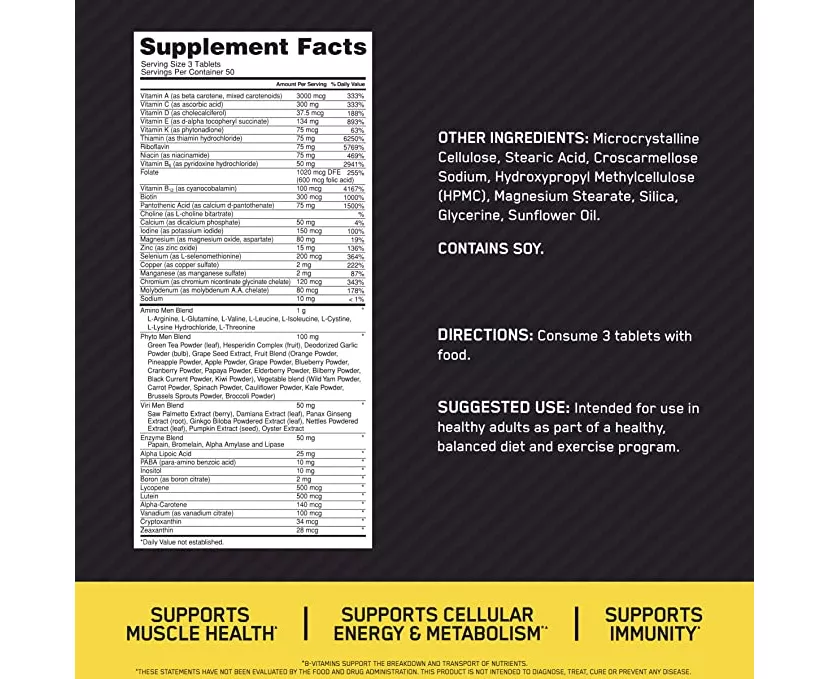OPTI-MEN® is more than a multi. It’s a NUTRIENT OPTIMIZATION SYSTEM OPTI-MEN® providing 75+ active ingredients in 4 blends specifically designed to support the nutrient needs of active men. Each 3-tablet serving provides free form amino acids, antioxidant vitamins A, C and E, essential minerals and botanical extracts in foundational amounts that can be built on by consuming a healthy, balanced diet.¹