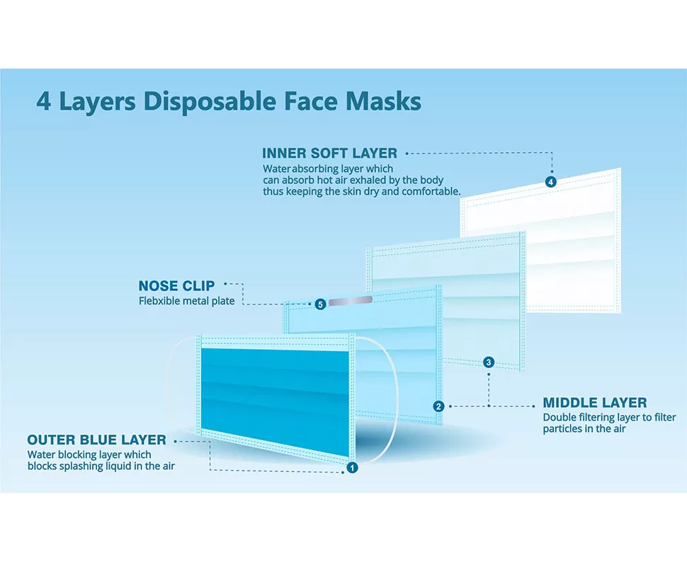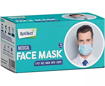 قناع ميديكال جريد للوجه من 4 طبقات يستخدم لمرة واحدة من أوبتي تكت - 50 قطعة
