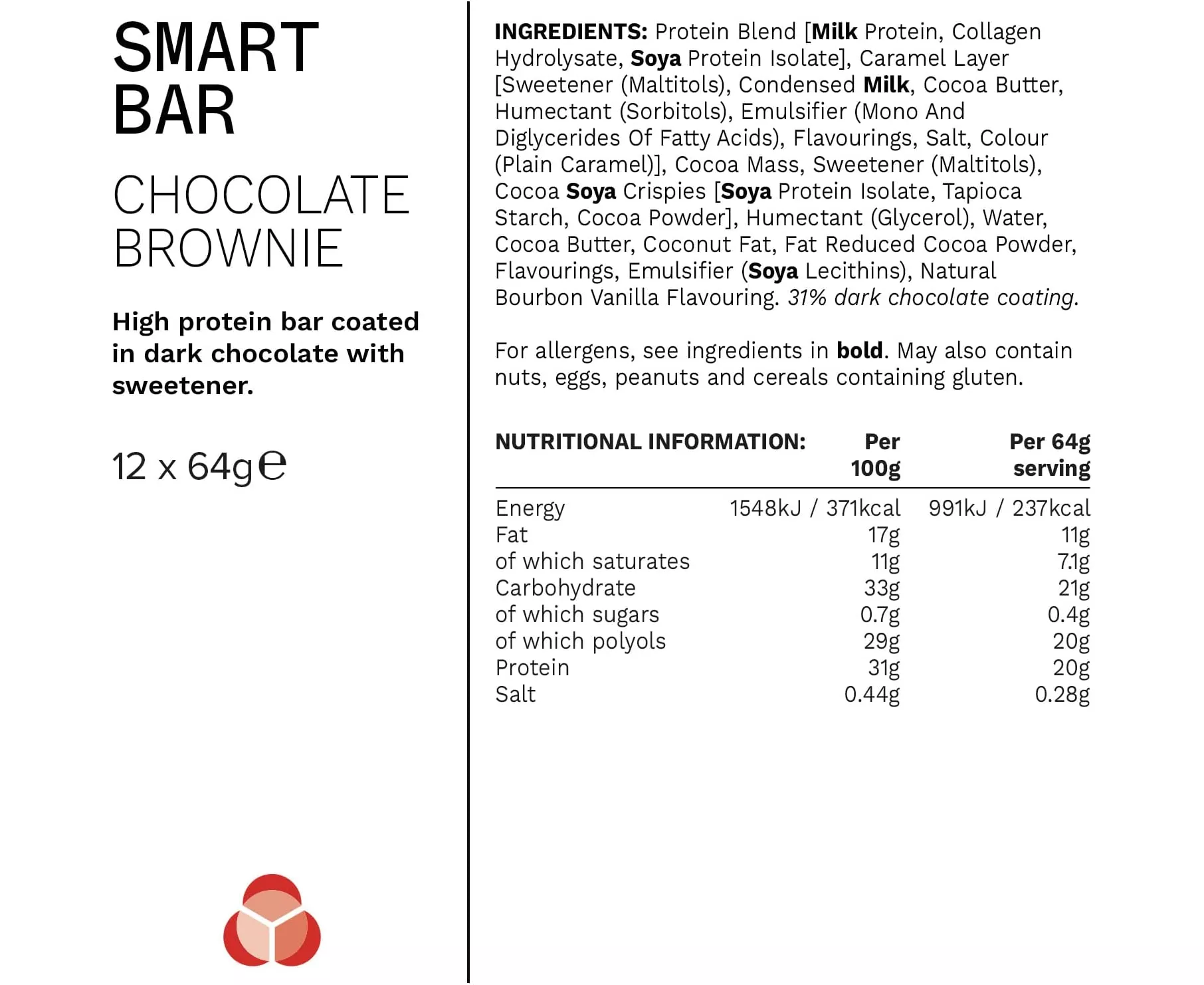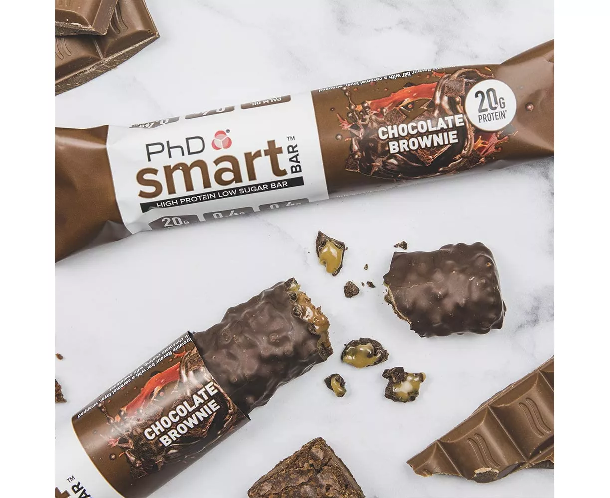 PhD Smart Bar-High Protein Low Sugar Bar, Dark Choc Brownie, 64 g, Pack of 12, Great tasting, triple layered bar, Contains no palm oil or FOS, Available in 8 delicious flavours