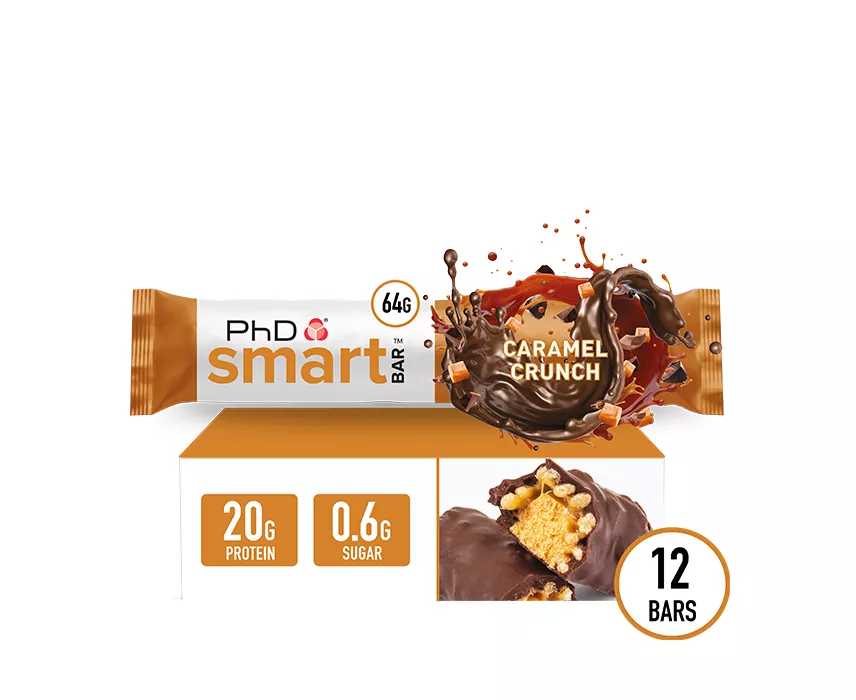 Smart Bar is a delicious high protein, low sugar snack. The bar contains a super-soft protein centre, coated in gooey caramel and protein crispies, which truly delivers that satisfying crunch texture when you take a bite. If this wasn't enough, the smooth chocolate coating really does replicate a true confectionary bar taste whilst keeping your macros intact. Smart Bar; delivers 20g of quality protein and less than 2.1g sugar (depending on flavor). In addition to this, Smart Bar™ is palm oil free.