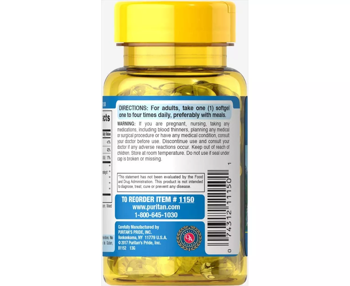 For adults, take one (1) softgel one to four times daily, preferably with meals.