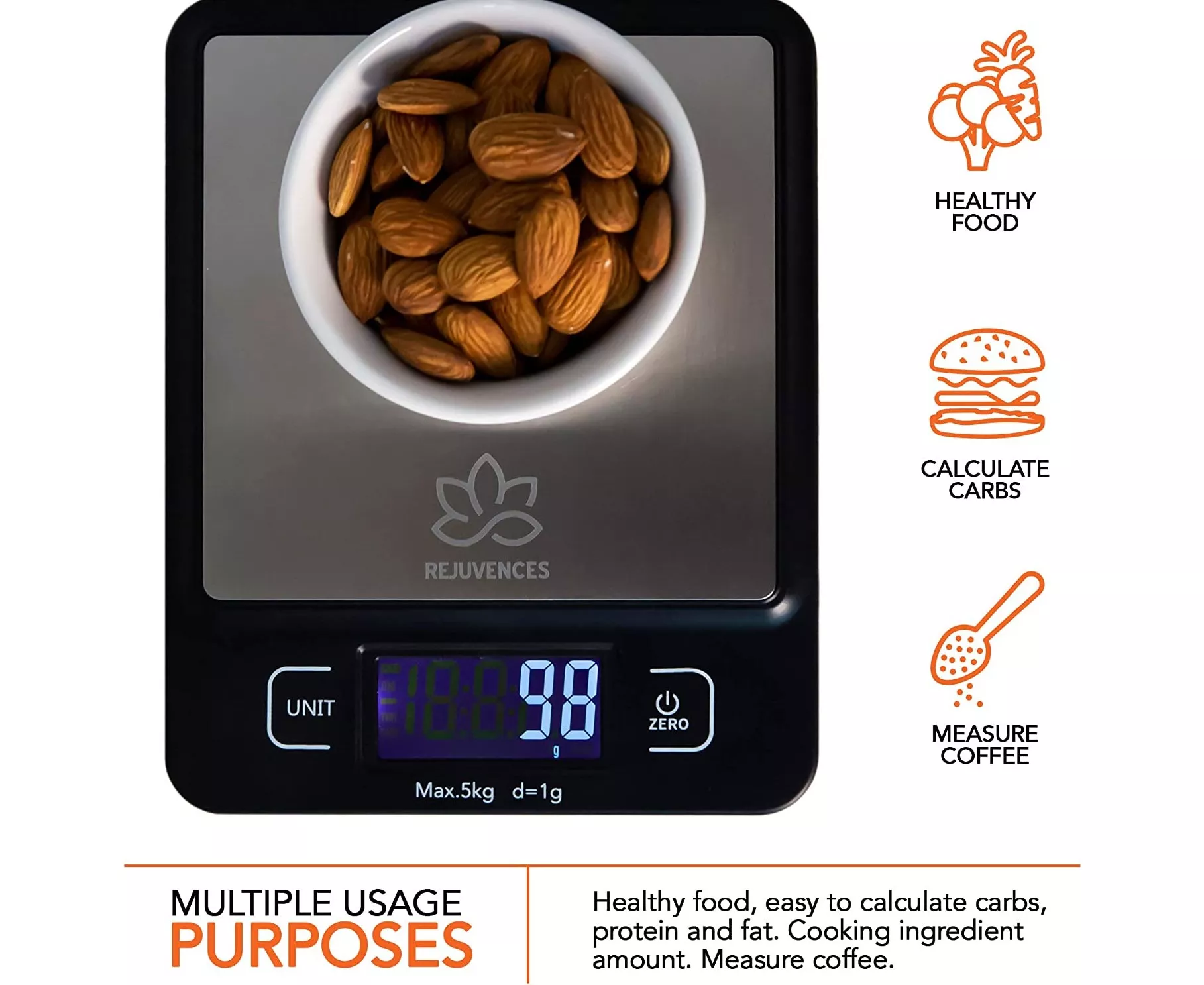 With our mini kitchen weight scale, it is very easy to scale the appropriate amount matching the individual total calorie intake. With proper measurement you will have a balanced lifestyle, to succeed with your goal of weight loss or muscle gain.